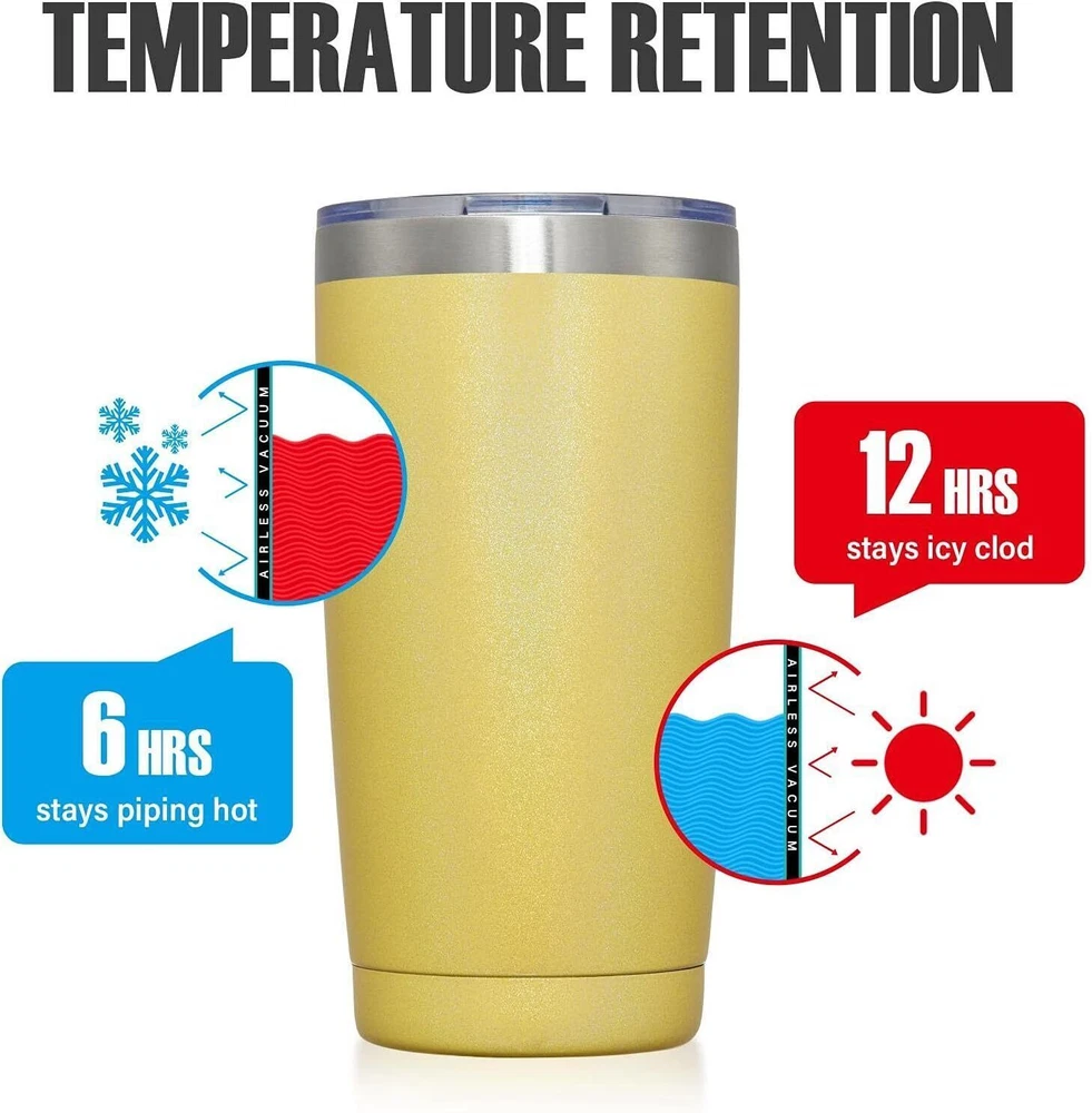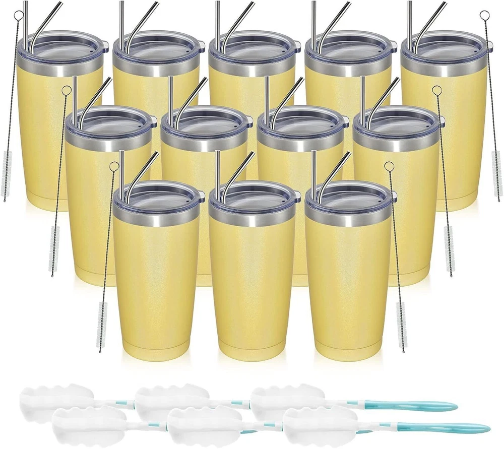 About this item DOUBLE WALL VACUUM INSULATION: Enjoy Beverage Cold or Hot Under normal temperature, it can keep a tumbler of ice cake for 12h until the ice totally melt, or hot coffee warm for 6h DURABILITY- 18/8 food grade stainless steel body, No BPA, healthier than plastic cup. The insulated tumbler never sweat due to the Vacuum insulated design. Powder coating on the outside fits more comfortably in your hand, looks good, anti-slip APPLICABLE TO VARIOUS OCCASIONS - MEWAY vacuum travel tumbler great for outdoor adventure, road trips, sports event, also the perfect travel cup to bring coffee from home to work or fill a tumbler of drink before you go to bed to drink through the night EASY CLEANING: hand washing is recommended, electro-polished interior doesn't transfer flavor & no metal aftertaste, you don't have to worry about your morning coffee or afternoon teas being ruined [Package included]12*20 oz glitter tumbler,12*splash proof cover with hole, 12*straight steel straw, 12*bend steel straw,6*cup brush,6*straw brush Color Rainbow Yellow Special Feature Manual Style HU-XI-201 Theme Food Recommended Uses For Product Travel Occasion Party Included Components Cups Specific Uses For Product Cold Drinks, Hot Drinks Shape Tumblers Pattern Solid Product Care Instructions Machine Wash, Hand Wash Only Material Feature Insulated Reusability Reusable Unit Count 12 Count Product Dimensions 3"W x 6"H