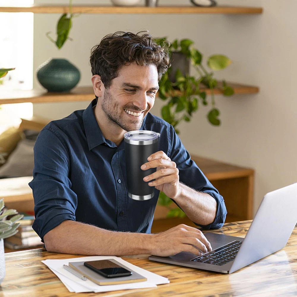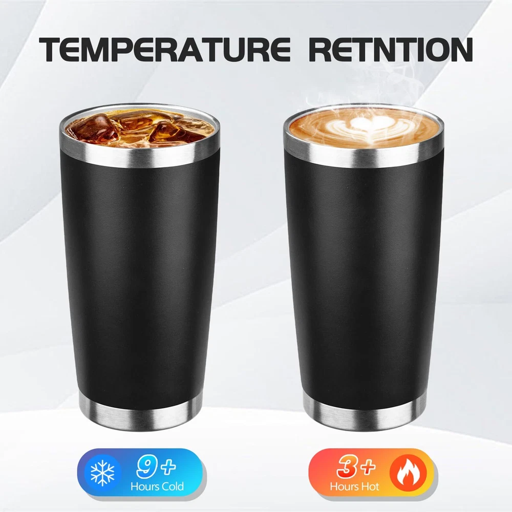 Features: Premium Material: 20oz Insulated tumblers are made of 304 food grade stainless steel with powder coating that won't fade, peel,and also provide additional grip to the exterior. Do not recommend washing in the dishwasher BPA Free Lid: Stainless steel tumbler set with lid and an opening for drinking, be aware of how hot your coffee is before taking a sip. Under normal temperature, the insulated coffee cup keep your water hot for three hours and cold for nine hours Fits Most Cup Holders: 20oz coffee travel mug body height is 6.69",the drink-through lid diameter is 3.38". It also fits in the most car drink holder, Carry around your beverages whether home, office, picnic, hiking or camping adventures Colored Powder Coated Tumbler : Powder coating gives you multiple color options, make an impression on your lucky recipients. Colored powder coated finish on the outside which is better for hand grip. Awesome Tumblers: Everyone loved them!!! You can use these cups to make gifts for yourself, friends and families. It doesn’t hold smells as you switch up your drinks during the day (ginger water,hot tea,coffee)