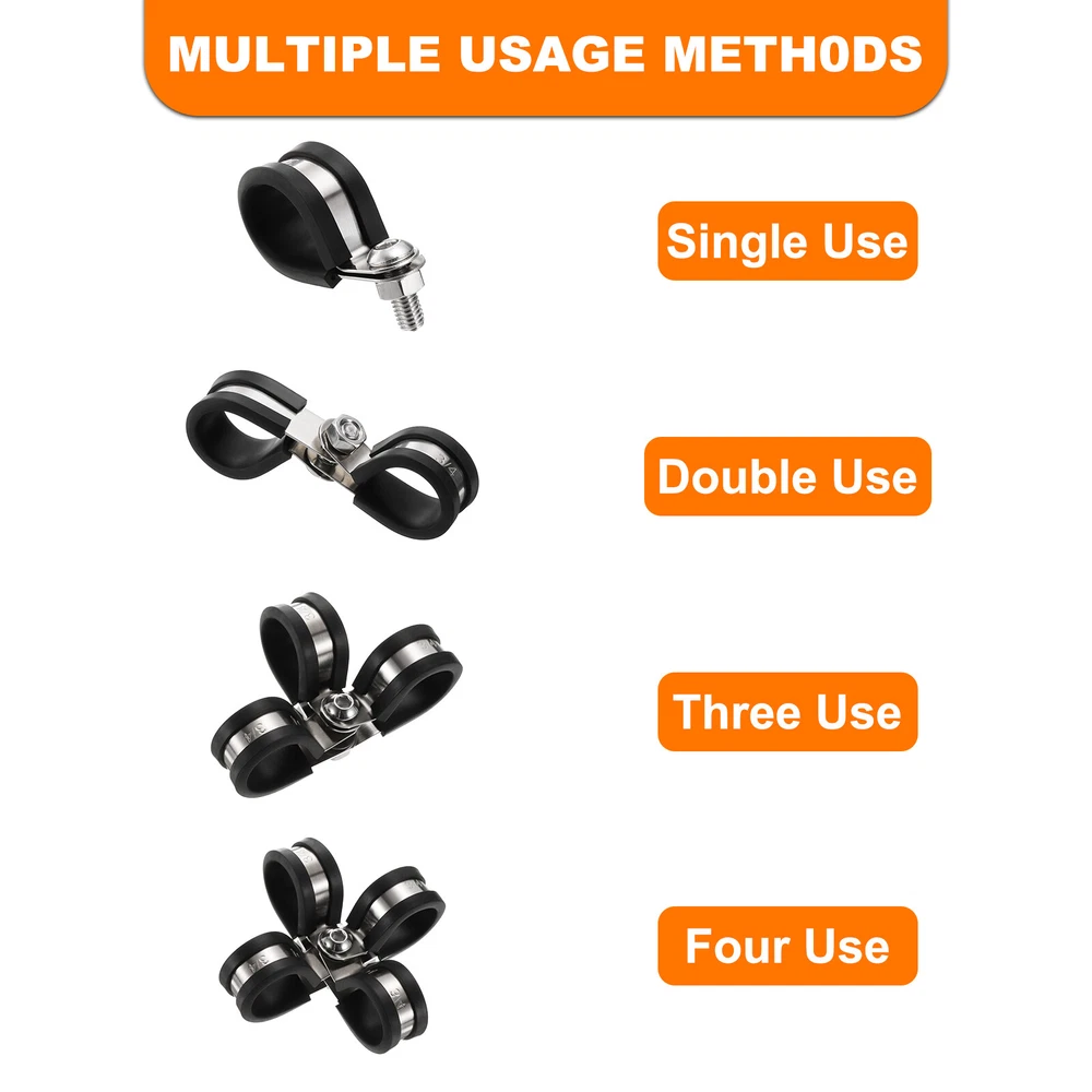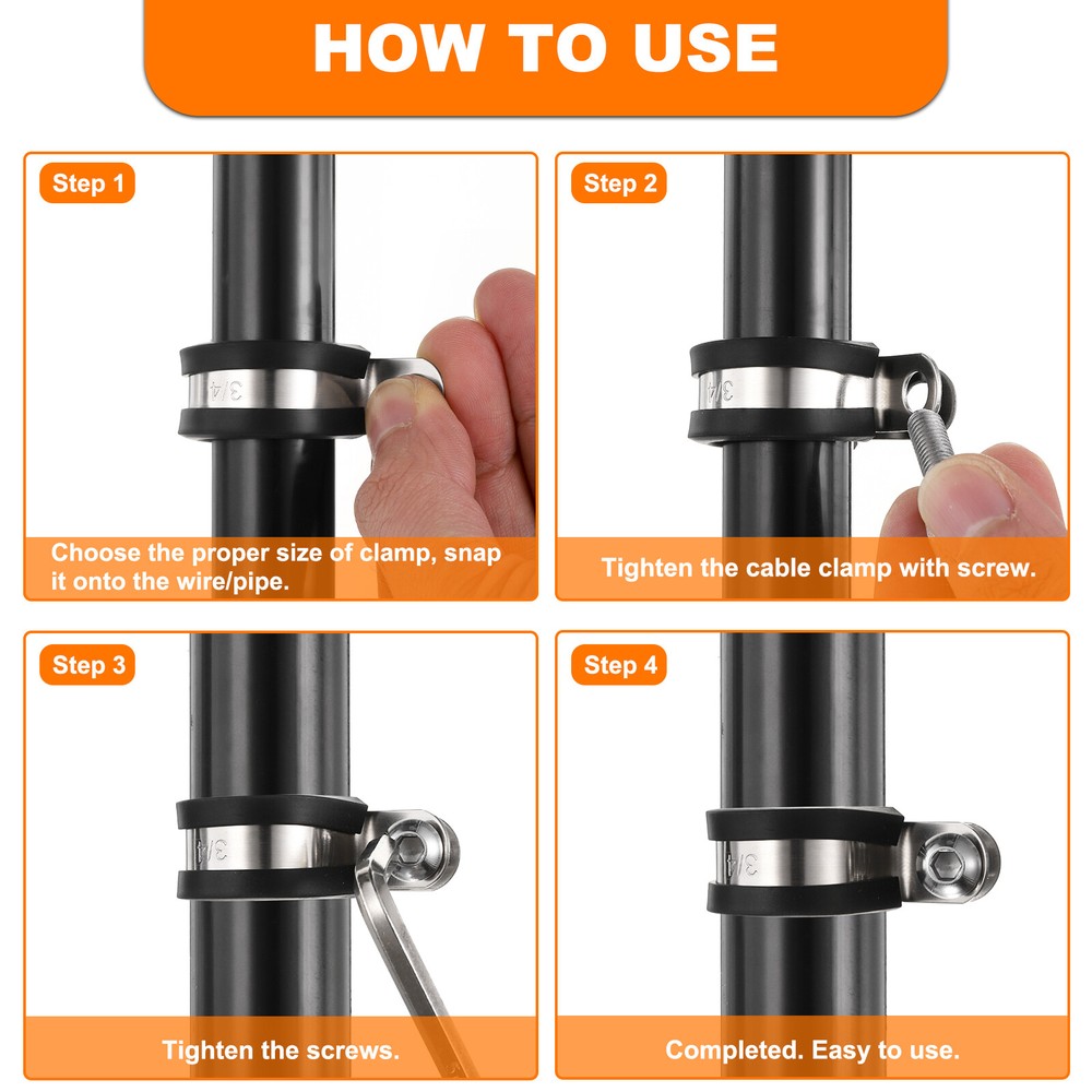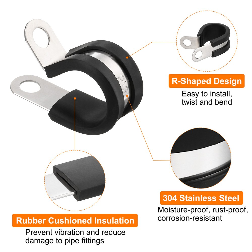 Document The pipe clamps are made of 304 stainless steel, which is wear-resistant, moisture-proof, rust-proof, cold-resistant, heat-resistant, corrosion-resistant, waterproof, and oil-proof.The rubber cushion on the cable clamp has good flexibility, impact resistance, and friction resistance, which can help reduce the damage to the pipe fittings caused by impact, extrusion, and vibration during transportation, and its insulation performance makes you safer during installation and use.With a R-shaped design, the hose clamp is easy to twist, bend, and operate during installation, and it is easy to disassemble. Just use a screwdriver and screws to fix the wire clamp in place and tighten it, which can also be reused.The metal clamps are used to fix and support pipes, wires, cables, etc., which can protect them well and firmly fix them in place, extending their service life.These loop clamps can be used in automobiles, industries, ships, outdoors, mechanical maintenance, windshield, home decoration, homes, etc., which are suitable for the management, maintenance and repair of wires, cables, pipes, hoses, lines, etc. 20pcs Stainless Steel Cable Clamps 5/8 Inch Rubber Cushioned Insulated Clamp The pipe clamps are made of 304 stainless steel, which is wear-resistant, moisture-proof, rust-proof, cold-resistant, heat-resistant, corrosion-resistant, waterproof, and oil-proof. The rubber cushion on the cable clamp has good flexibility, impact resistance, and friction resistance, which can help reduce the damage to the pipe fittings caused by impact, extrusion, and vibration during transportation, and its insulation performance makes you safer during installation and use. With a R-shaped design, the hose clamp is easy to twist, bend, and operate during installation, and it is easy to disassemble. Just use a screwdriver and screws to fix the wire clamp in place and tighten it, which can also be reused. The metal clamps are used to fix and support pipes, wires, cables, etc., which can protect them well and firmly fix them in place, extending their service life. These loop clamps can be used in automobiles, industries, ships, outdoors, mechanical maintenance, windshield, home decoration, homes, etc., which are suitable for the management, maintenance and repair of wires, cables, pipes, hoses, lines, etc. Hot Item Payment 1.We accept eBay payment . 2.Payment must be received within 7 business days of auction closing. Shipping 1.We ship to your eBay or Paypal address. Please make sure your eBay and Paypal address is correct before you pay. 2.Items will be shipped within 1-3 business day when we received payment. 3.Delivery time depends on destination and other factors. Description Policy 20pcs Stainless Steel Cable Clamps 5/8 Inch Rubber Cushioned Insulated Clamp The pipe clamps are made of 304 stainless steel, which is wear-resistant, moisture-proof, rust-proof, cold-resistant, heat-resistant, corrosion-resistant, waterproof, and oil-proof. The rubber cushion on the cable clamp has good flexibility, impact resistance, and friction resistance, which can help reduce the damage to the pipe fittings caused by impact, extrusion, and vibration during transportation, and its insulation performance makes you safer during installation and use. With a R-shaped design, the hose clamp is easy to twist, bend, and operate during installation, and it is easy to disassemble. Just use a screwdriver and screws to fix the wire clamp in place and tighten it, which can also be reused. The metal clamps are used to fix and support pipes, wires, cables, etc., which can protect them well and firmly fix them in place, extending their service life. These loop clamps can be used in automobiles, industries, ships, outdoors, mechanical maintenance, windshield, home decoration, homes, etc., which are suitable for the management, maintenance and repair of wires, cables, pipes, hoses, lines, etc. Hot Item Payment 1.We accept eBay payment . 2.Payment must be received within 7 business days of auction closing. Shipping 1.We ship to your eBay or Paypal address. Please make sure your eBay and Paypal address is correct before you pay. 2.Items will be shipped within 1-3 business day when we received payment. 3.Delivery time depends on destination and other factors.
