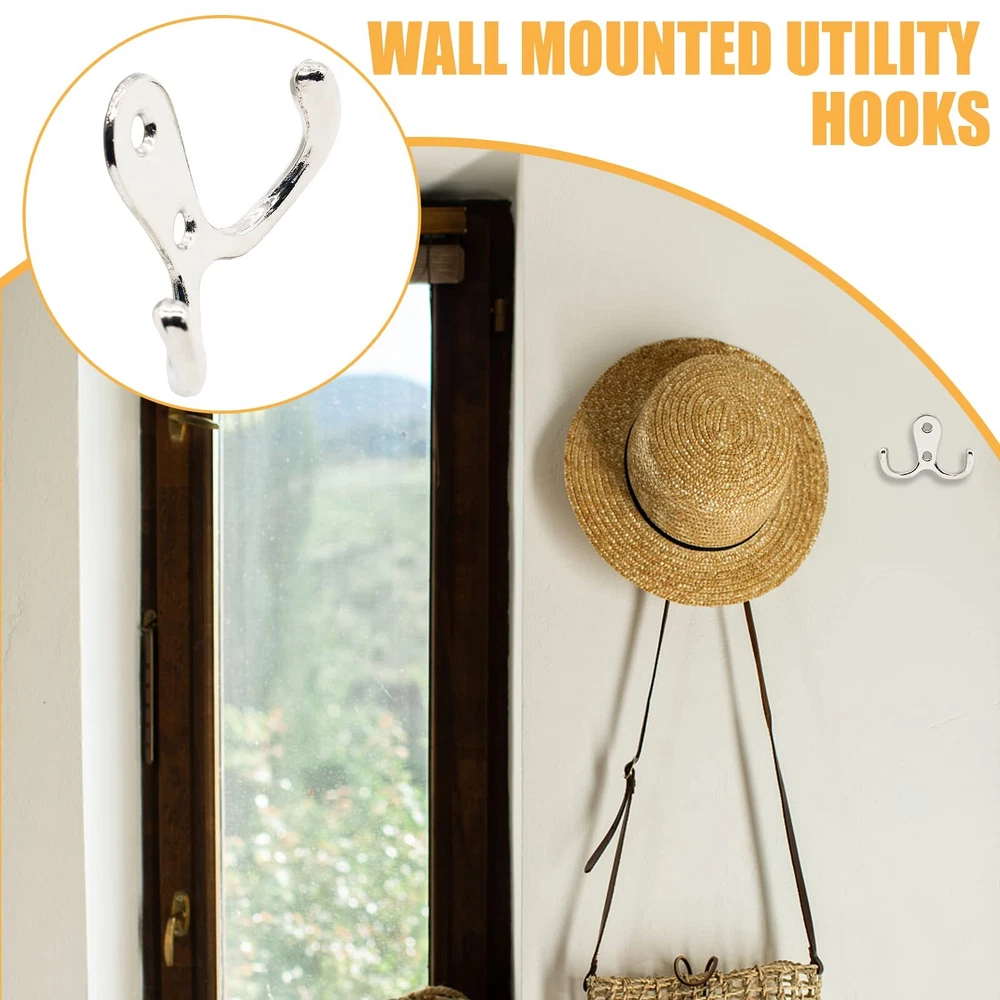 Modern coat hooks are compact and decorative for screwing on installation in the bathroom, bedroom and office. Double hooks for hanging caps, hats, towels, clothes, keys, bags and etc. Wall hooks for hanging heavy duty are easy to install by screwing on the wall, closet, wooden board directly. Specifications: Size: 1.6" x 2.1"/41mm x 54mm(L*W) Mounting Hole Spacing: 0.7"/18mm Wall Mounted Width: 0.7"/18mm Screws Included: M4*16mm Style: Double Pronged, 2 Mounting Holes Material: Zinc Alloy Color: Brushed Nickel Quantity: 20 Pieces Note: Due to manual measurement, please allow a deviation of 1 - 2mm. Please check our product size carefully and read the product size descriptions before purchasing to avoid possible unpleasant shopping experience. Package Included: 20 x Brushed Nickel Coat Hooks, with M4*16mm mounting screws. Size: 1.6" x 2.1"/41mm x 54mm(L*W), Mounting Hole Spacing: 0.7"/18mm. Heavy Duty Coat Hooks: Made of solid zinc alloy, the wall mounted coat hooks are rustproof, corrosion resistant and durable, with strong bearing capacity up to 35lbs. Double Wall Hook: Designed with double pronged hooks for hanging, the wall mounted hooks for hanging are perfect for storage in bedroom, bathroom, living room, kitchen and closet. Easy to Install: Screw in coat hooks for wood are easy to install with wall mounting screws. Directly screwing the wall hooks on the closet, door for hanging coat, towel, clothing and etc. Satisfaction Oriented: If you don't absolutely love them let us know and we will strive to improve your shopping experience! We are so confident you will love our products.