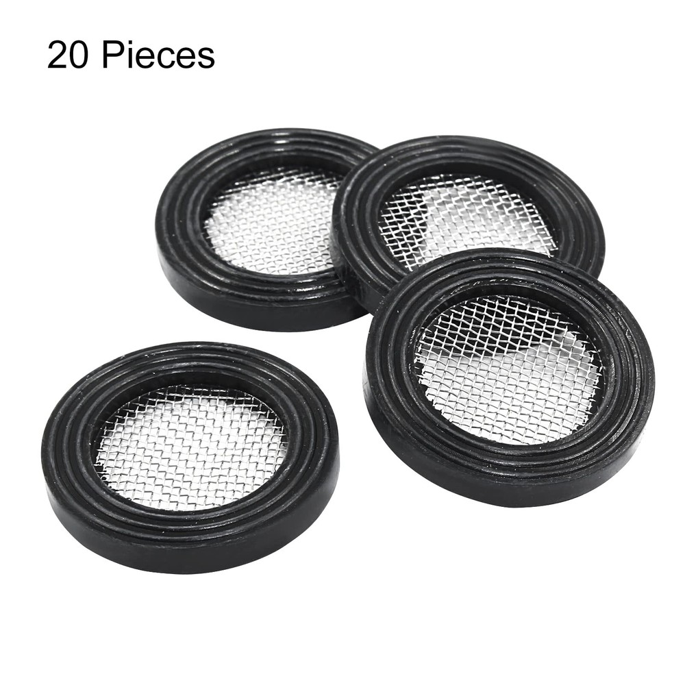 Fits firmly and snugly in irrigation system, garden hose equipment, the water screen filter effectively filter the dirt, sand mixture out. Easy to install and seal well with rubber washer and tabs around in faucet fittings. Specifications: Outer Diameter: 1"/25mm Mesh Diameter: 0.63"/16mm Thickness: 0.12"/3mm Mesh: 40 Mesh Material: Stainless Steel, Rubber Color: Black, Silver Quantity: 20 Pieces Note: Due to manual measurement, please allow a deviation of 1 - 2mm. Please check our product size carefully and read the product size descriptions before purchasing to avoid possible unpleasant shopping experience. Package Included: 20 x 40 Mesh Water Hose Screen. OD: 1"/25mm, Mesh Diameter: 0.63"/16mm, Thickness: 0.12"/3mm. Durable: Constructed with stainless steel mesh and rubber ring, the washer hose filter is sturdy, rustproof and wear resistant. Easy to Install: Fits for standard 3/4 inch garden hose faucet connector, the hose inlet strainer works effectively and firmly by inserting inside the fittings. Functional Mesh Washer: Universal mesh washer hose filter is a practical hose screens for water filter screen and water faucet washers. Satisfaction Oriented: If you don't absolutely love them let us know and we will strive to improve your shopping experience! We are so confident you will love our products.