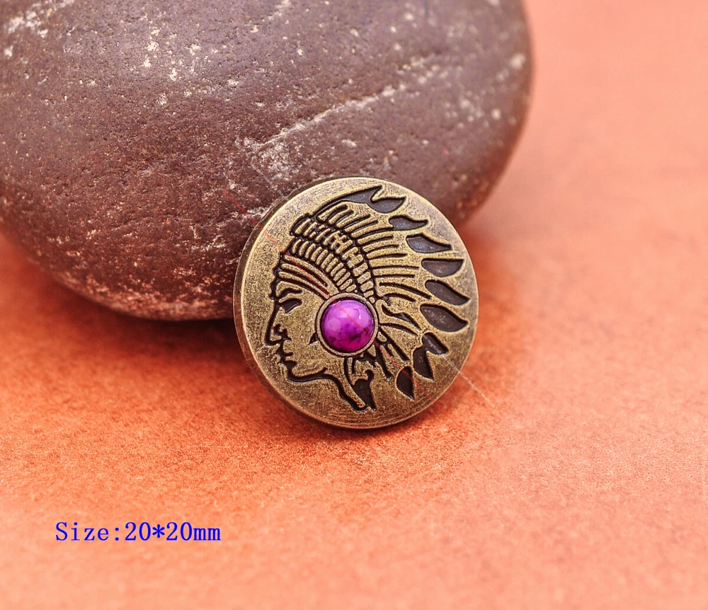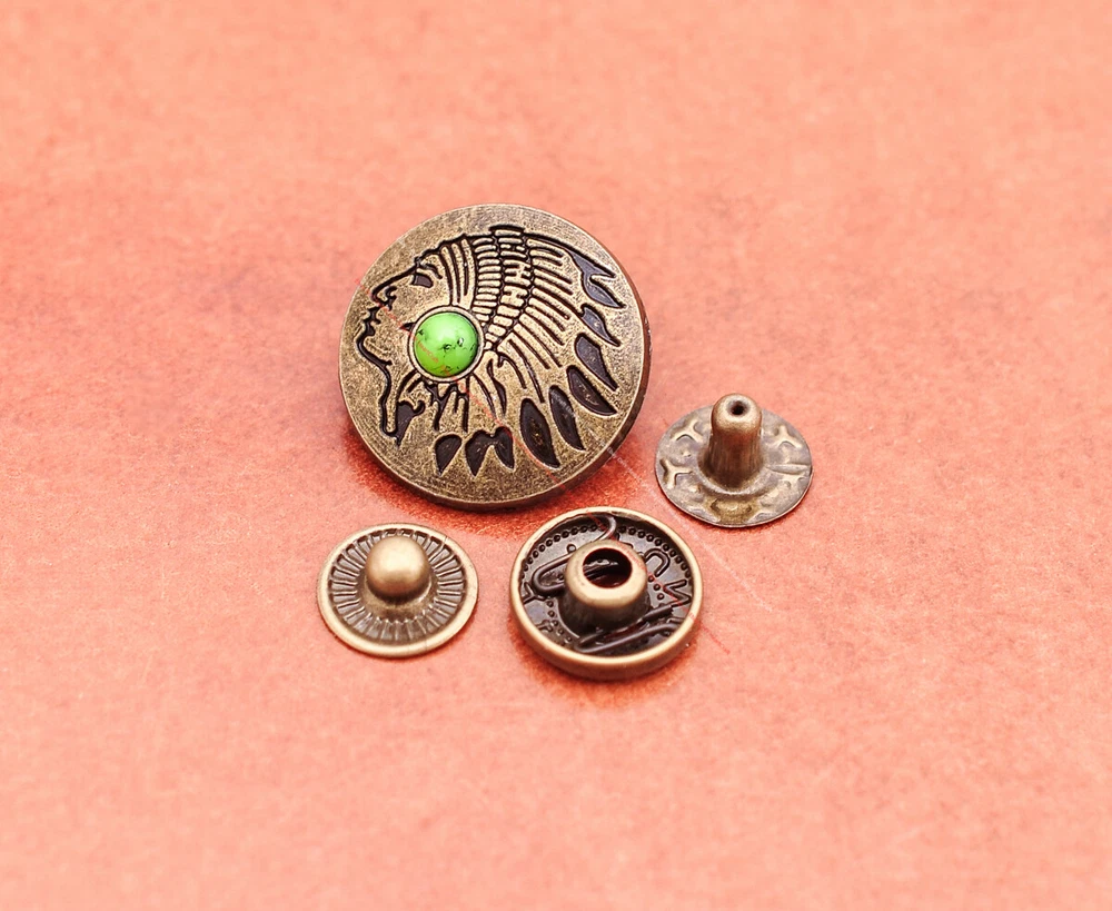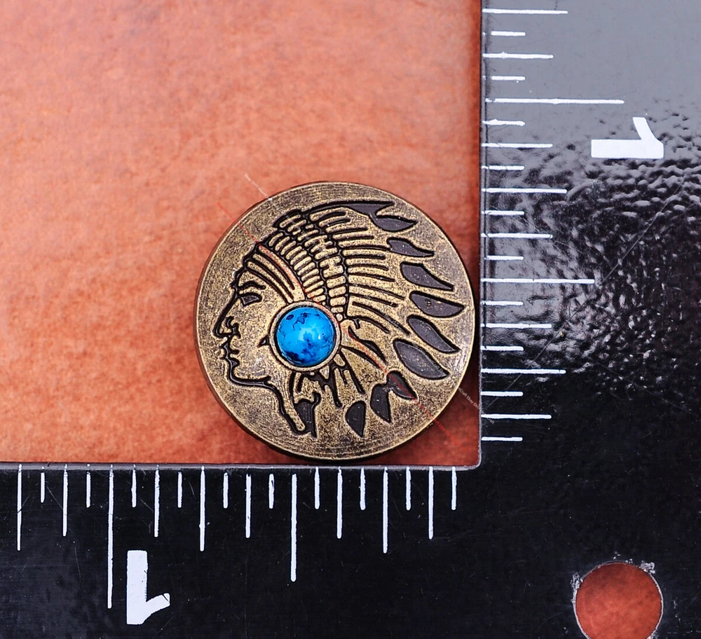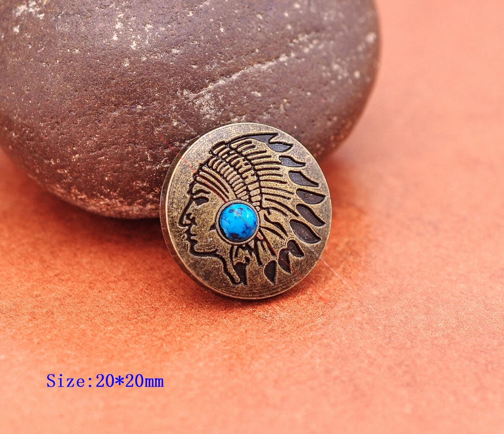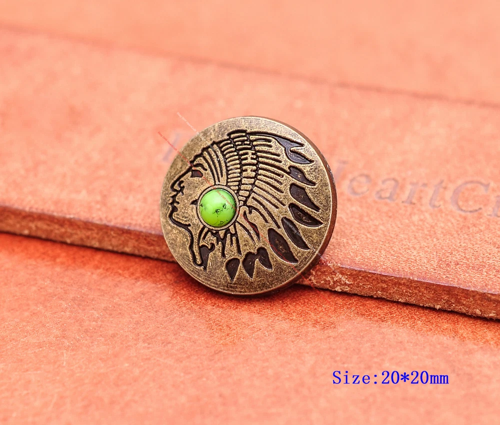 20x Brass Indian Head Leathercraft Turquoise Snap Button Closures Connector 20x Brass Indian Head Leathercraft Turquoise Snap Button Closures Connector Suitable For: Belts, Handbags, Hats, Jackets, Knife Shealths, Pouches, Saddles, Shoes, leather craft, clothes, craft,etc.. We have lots of conchos in my shop .Pls visit my store。pls add my store to your favorite shop.Thank you very much. Product: HORSE SADDLE LEATHERCRAFT CONCHOS Material: Metal alloy Color: Please refer to pictures Size: 20*20mm approx. Component: 20pcs/ set. *Under different light conditions, color may looks different. WARNING: The picture of the product all have copyright .All rights reserved, pirates must investigate. 盗图一经发现,一律追究法律责任,绝不和解 。 Payment Delivery details Contact us Terms of sale About us Payment *Please complete payment via PayPal. *If you buy more than one item, please wait for combined invoice to get shipping discount. *Please make sure your shipping address in eBay is correct before payment. Delivery details Country Shipping Methods Average Delivery Time USA Speedpak China(with tracking#) 7~15 working Days Others Int’l airmail from Hong Kong 15~35 Days *We ship from Hong Kong /China, it usually takes 10~30 days for delivery for most countries. *If the parcel does not arrive within estimated delivery time, please contact for help by eBay message. *We will make full refund or resend for free if parcel lost. Contact us We left positive feedback for you after receiving payment. Your feedback is very important for us, positive feedback and 5 Score DSR is highly appreciated. Please let us know before leaving any negative feedback or 1 point, 2 point low DSR or open any disputes on Paypal and Ebay, please give us the opportunity to resolve any problems and we will try our best to satisfy your needs. If any question, please feel free to contact us via "Ask seller a question" ,We try our best to reply to your emails as soon as possible, due to high volume of daily incoming emails and time zone difference, we may not be able to reply your emails immediately. Please allw 1-2 business days for us to response. We have producing factory, and teams for QC and Marketing, we are strict with quality control and provide with good online and after-sale service. Mixed lots wholesale order are welcome. Please feel free to contact if any questions. Terms of sale *Defective item will be replaced free and without returning. *If it is not defective item or wrong item/ color sent, buyer need to pay for the return postage. *Please be sure to contact before you send back the item. About us We are a kind and honest seller,We are factory ,we can offer factory price.Welcome to wholesale. your full satisfaction is always our best wishes. If you have any problems with our items, please kindly contact us.