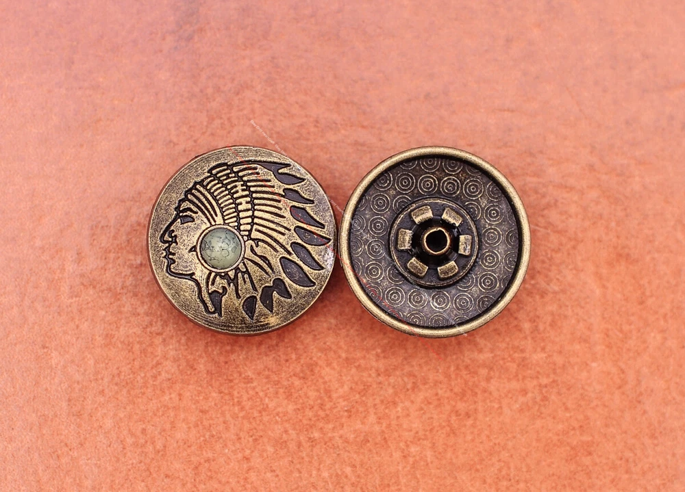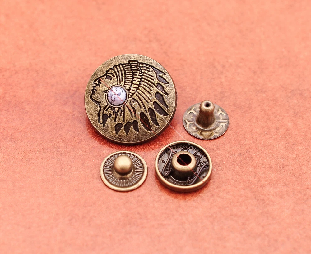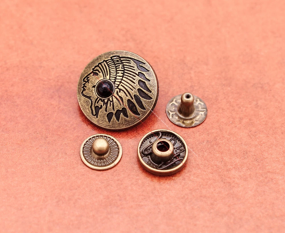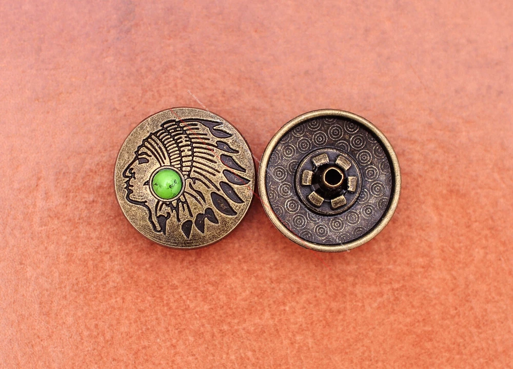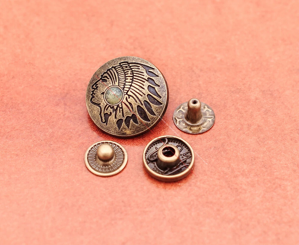 20x Brass Indian Head Leathercraft Turquoise Snap Button Closures Connector 20x Brass Indian Head Leathercraft Turquoise Snap Button Closures Connector Suitable For: Belts, Handbags, Hats, Jackets, Knife Shealths, Pouches, Saddles, Shoes, leather craft, clothes, craft,etc.. We have lots of conchos in my shop .Pls visit my store。pls add my store to your favorite shop.Thank you very much. Product: HORSE SADDLE LEATHERCRAFT CONCHOS Material: Metal alloy Color: Please refer to pictures Size: 20*20mm approx. Component: 20pcs/ set. *Under different light conditions, color may looks different. WARNING: The picture of the product all have copyright .All rights reserved, pirates must investigate. 盗图一经发现,一律追究法律责任,绝不和解 。 Payment Delivery details Contact us Terms of sale About us Payment *Please complete payment via PayPal. *If you buy more than one item, please wait for combined invoice to get shipping discount. *Please make sure your shipping address in eBay is correct before payment. Delivery details Country Shipping Methods Average Delivery Time USA Speedpak China(with tracking#) 7~15 working Days Others Int’l airmail from Hong Kong 15~35 Days *We ship from Hong Kong /China, it usually takes 10~30 days for delivery for most countries. *If the parcel does not arrive within estimated delivery time, please contact for help by eBay message. *We will make full refund or resend for free if parcel lost. Contact us We left positive feedback for you after receiving payment. Your feedback is very important for us, positive feedback and 5 Score DSR is highly appreciated. Please let us know before leaving any negative feedback or 1 point, 2 point low DSR or open any disputes on Paypal and Ebay, please give us the opportunity to resolve any problems and we will try our best to satisfy your needs. If any question, please feel free to contact us via "Ask seller a question" ,We try our best to reply to your emails as soon as possible, due to high volume of daily incoming emails and time zone difference, we may not be able to reply your emails immediately. Please allw 1-2 business days for us to response. We have producing factory, and teams for QC and Marketing, we are strict with quality control and provide with good online and after-sale service. Mixed lots wholesale order are welcome. Please feel free to contact if any questions. Terms of sale *Defective item will be replaced free and without returning. *If it is not defective item or wrong item/ color sent, buyer need to pay for the return postage. *Please be sure to contact before you send back the item. About us We are a kind and honest seller,We are factory ,we can offer factory price.Welcome to wholesale. your full satisfaction is always our best wishes. If you have any problems with our items, please kindly contact us.