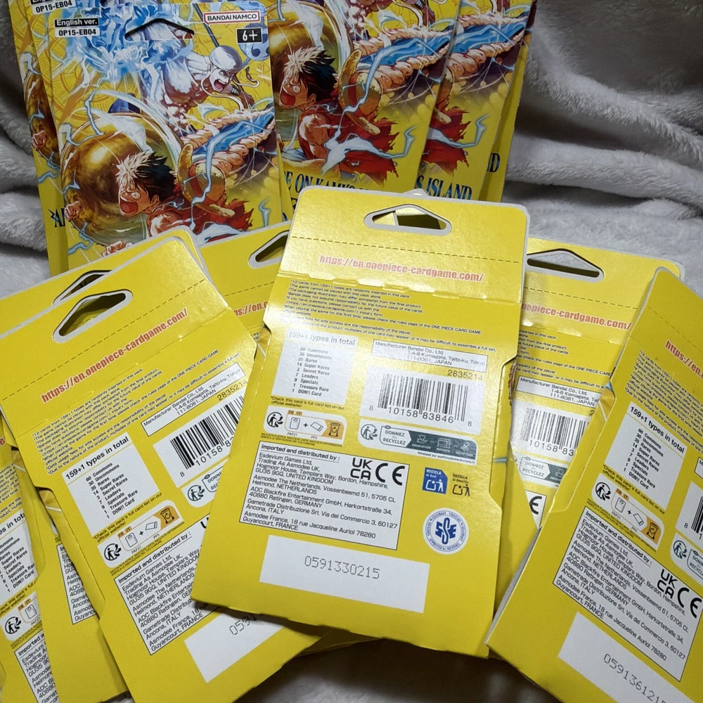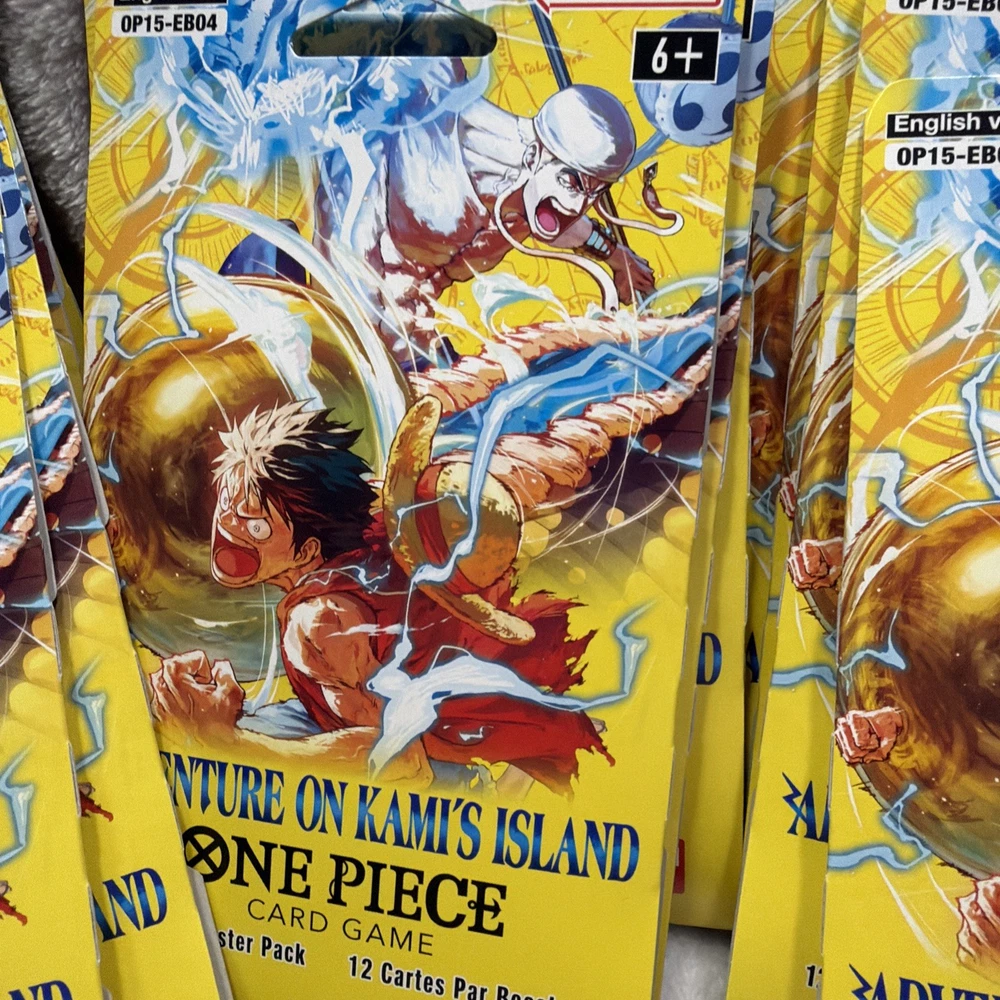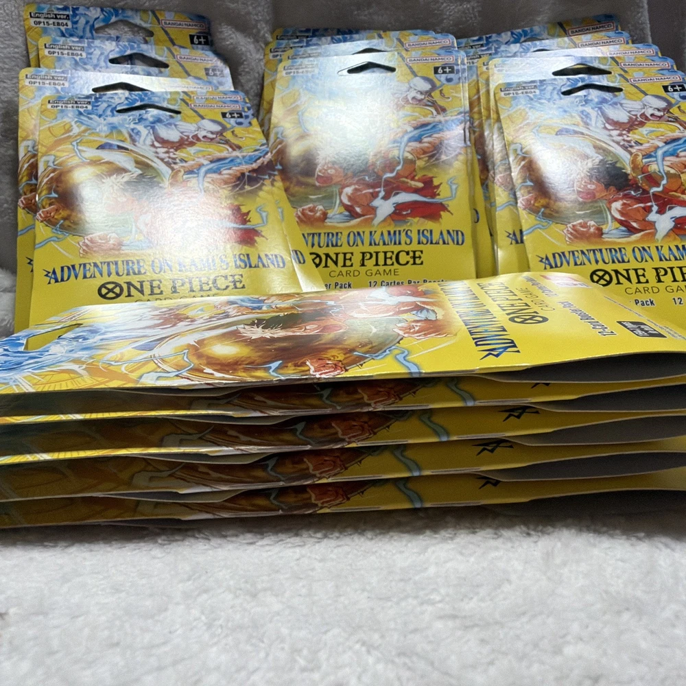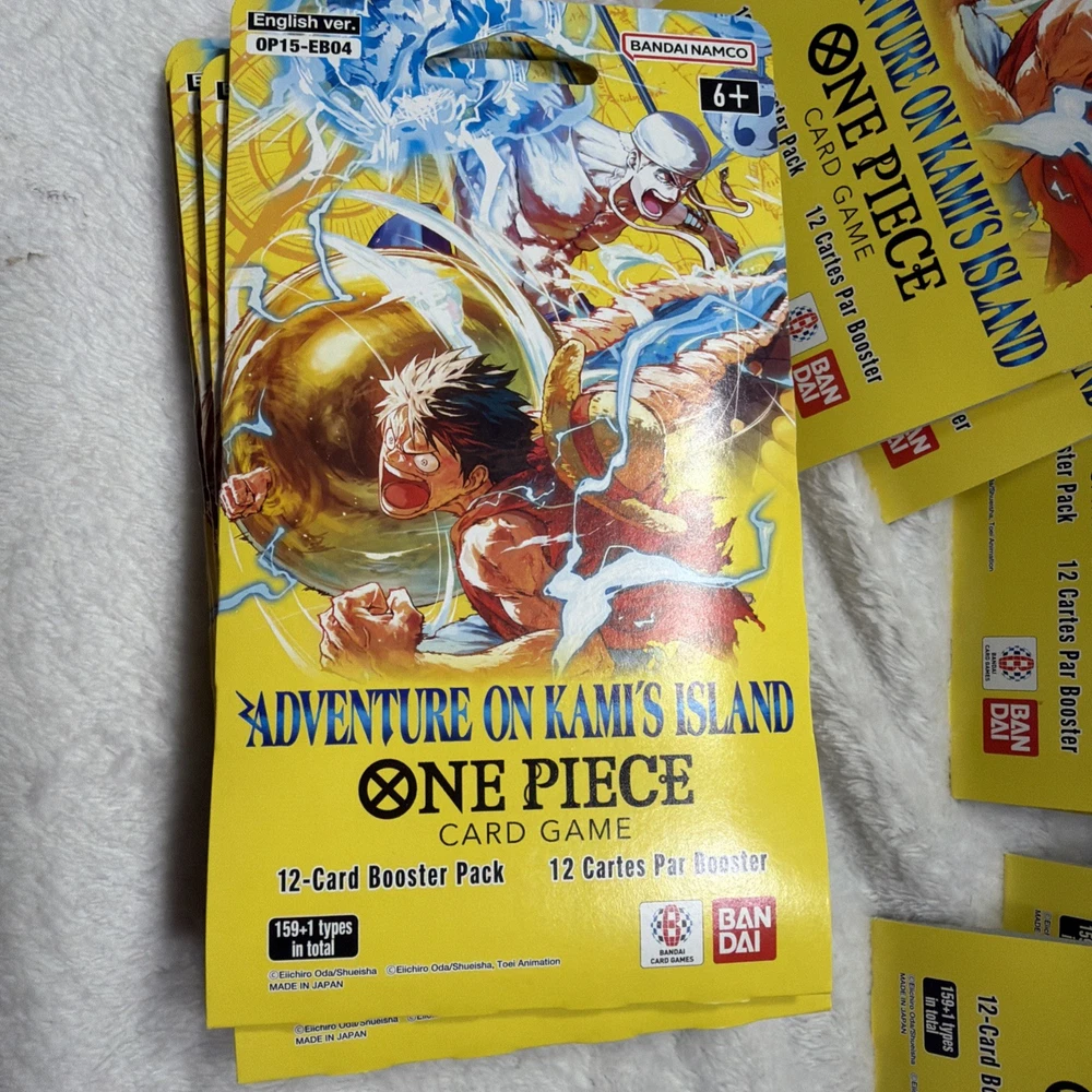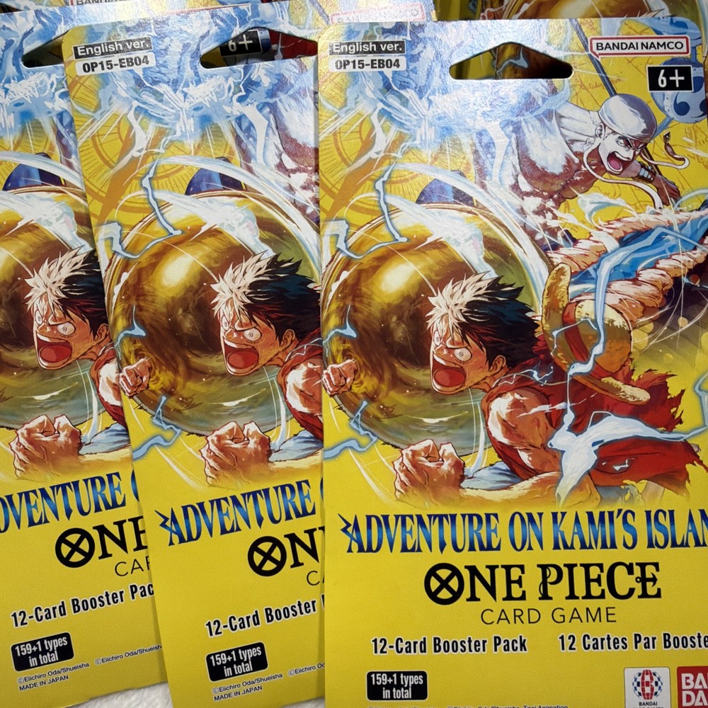 The product is a set of 20 sealed booster packs for the One Piece CCG set "Adventure on Kami's Island." Manufactured by Bandai in 2026, each pack contains cards made of card stock in English language. These packs are perfect for collectors and players aged 6 and above who enjoy adding new cards to their collection from this popular CCG series. Each pack offers a unique and exciting way to expand your card collection and enhance your gameplay experience.