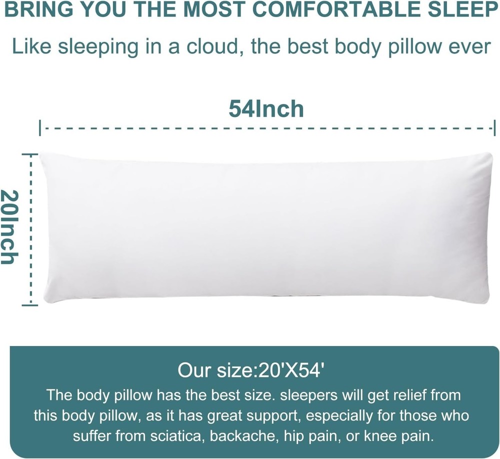 20x54 Inch Polyester Body Pillow Insert - Comfort and Breathability ‹ › ‹ › ‹ › ‹ › ‹ › ‹ › ‹ › ‹ › 20x54 Inch Polyester Body Pillow Insert Experience Comfort and Breathability Features: Ultra full body pillow insert made from 100% polyester. Extra breathable and soft fabric for ultimate comfort. Durable construction that avoids piling, ensuring long-lasting use. Large and soft design maintains its shape while providing medium firm support. Perfect for daily use, catering to multiple sleeping styles. Designed for side sleepers; measures 20 inches by 54 inches. Machine washable for easy care; wash in cold water, do not bleach, tumble dry low if needed. Fluffy and supportive without a pillowcase. Backed by a for your peace of mind. Benefits: Reduces the need for multiple bulky pillows by providing comprehensive support. Relieves pressure on various areas of the body for a more restful sleep. Enjoy a smooth and comfortable sleep, waking up energized and refreshed. Ideal for anyone looking to enhance their sleep experience. Why Choose Our Body Pillow Insert? Transform your sleep experience with our 20x54 Inch Polyester Body Pillow Insert, expertly designed for those who value comfort and support. This ultra- insert is not only exceptionally soft and breathable but also durable enough to provide you with long-lasting comfort. With its medium firm support, it is perfect for anyone seeking to relieve pressure and enhance their overall sleep quality. Don't miss out on a luxurious sleep experience. Invest in your rest with our body pillow insert, and if it doesn't meet your expectations, simply out for a full refund, no questions asked. Order yours today and embrace the comfort you deserve! Shipping Free & Fast Shipping - We offer free shipping to most of the USA with a normal delivery time of 3-7 days. However, due to the current situation, additional delivery time (up to 3 weeks) may be required for some items. Alternative Carriers - We may use alternative carriers (e.g. USPS, FedEx, UPS, etc.) to ensure your package arrives safely and on time. Due to the use of multiple carriers, we are unable to provide a tracking number automatically. Handling Time - Orders are processed and shipped within 1-2 business days of receiving cleared payment. Shipping Restrictions - Shipping to Alaska, Hawaii, Puerto Rico, Guam, and other US territories may incur shipping charges or delivery restrictions. Please contact us before ordering, or your order can be refunded/cancelled. State Restrictions - There may be restrictions based on your state of purchase. For example, certain items may not be shipped to California due to state regulations. Contact for Tracking Updates - If you require tracking updates or have any concerns about the delivery of your order, please feel free to contact us, and we will be happy to assist you. Return 30-Day Hassle-Free Returns - We want you to be completely satisfied with your purchase. If you are not, you can return the item within 30 days of receiving it for a full refund or exchange. Easy Return Process - To start a return, simply contact us and we will provide you with a prepaid return shipping label and detailed instructions. Restocking Fee - There are no restocking fees for returns. However, the buyer is responsible for return shipping costs if the return is not due to a seller's error. Refund Processing Time - Refunds will be processed within 5 business days of receiving the returned item in its condition. Payment We accept all major credit cards, PayPal, and Apple Pay for your convenience. Your payment information is secure and encrypted to ensure a safe and seamless transaction. Please complete your payment within 3 days of purchase to avoid any delays in shipping. Feedback Your feedback is extremely important to us. We strive to provide the best products and customer service possible. If you are satisfied with your purchase, please take a moment to leave us a positive review. If you have any concerns or issues with your order, please contact us before leaving negative feedback. We are committed to resolving any problems and ensuring your satisfaction. Contact Us If you have any questions or concerns, please feel free to out to our customer support team. You can contact us through the eBay messaging system. We are available Monday to Friday, 9:00 am to 5:00 pm EST, and we will do our best to respond to your inquiry within 24 hours. Buy it now and enjoy a pleasant shopping experience! Unit Quantity: 1 Material: Cotton,Polyester Features: Machine Washable,Breathable,Soft Care Instructions: Machine Wash,Do Not Bleach,Tumble Dry Low If Needed,Wash Dark Colors Separately Department: Unisex Baby & Toddler,Kids,Teens,Adults Room: Bedroom Size: 20 x 54 in Type: Body Pillow Fill Material: 100% Polyester Color: White Shape: Rectangular Pattern: Solid Style: Modern Closure Type: No Closure Thread Count: 200 or Less GSM (Grams per Square Meter): Below 150