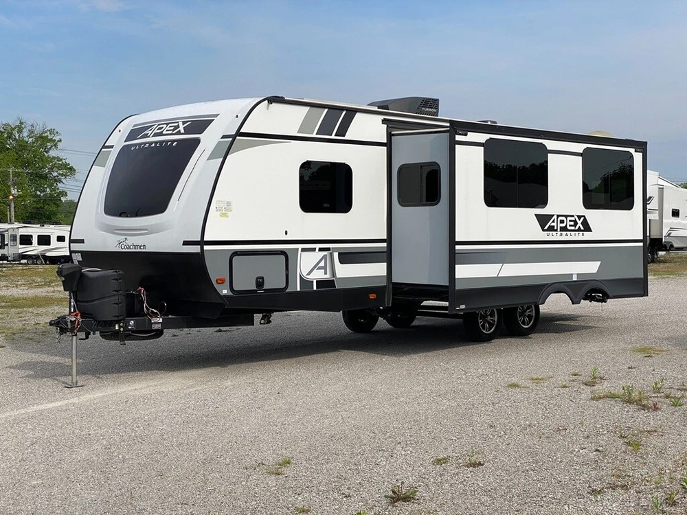 VIN (Vehicle Identification Number): 5ZT2CXSB6MS041099 Mileage: 0 Model: Apex Ultra Lite Awnings: 1 Make: Coachmen Type: Travel Trailer Length (feet): 30 Vehicle Title: Clean Slide Outs: 1 Sleeping Capacity: 6 For Sale By: Dealer Year: 2021 Leveling Jacks Included?: Yes Water Capacity (Gallons): 41-50