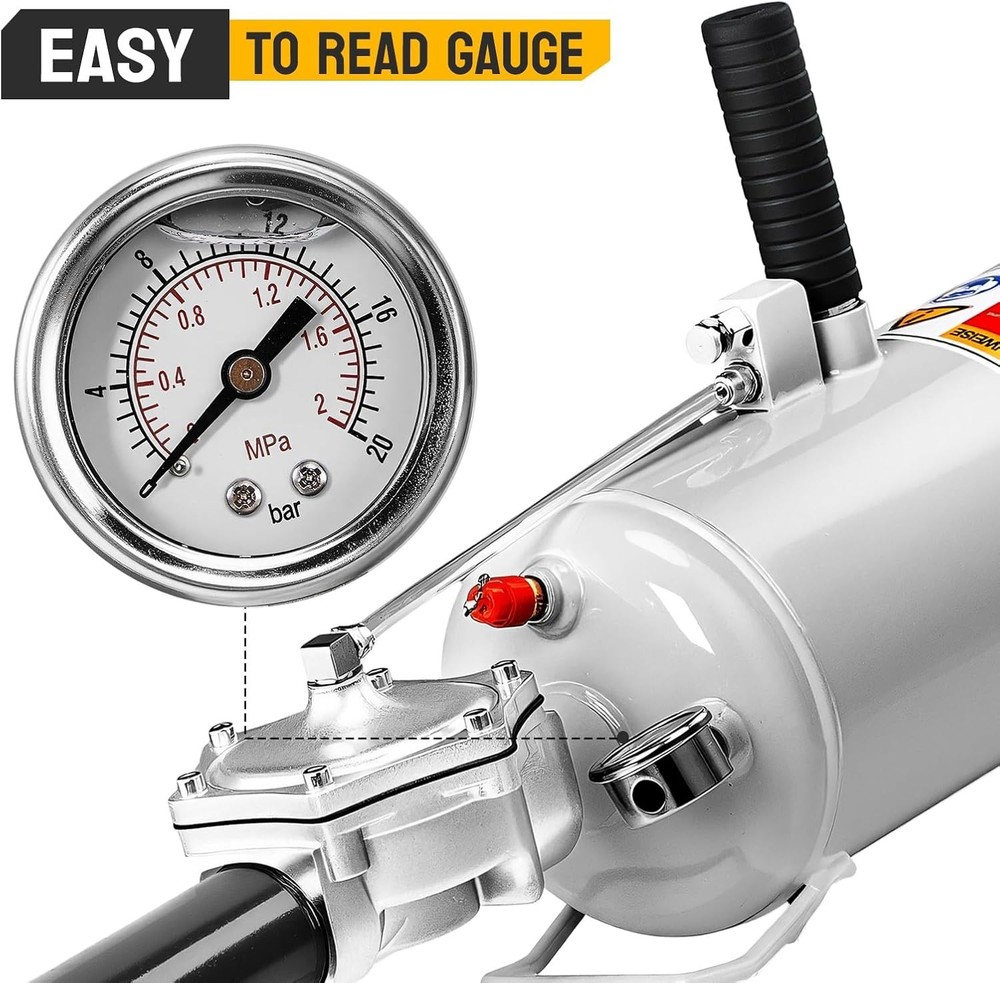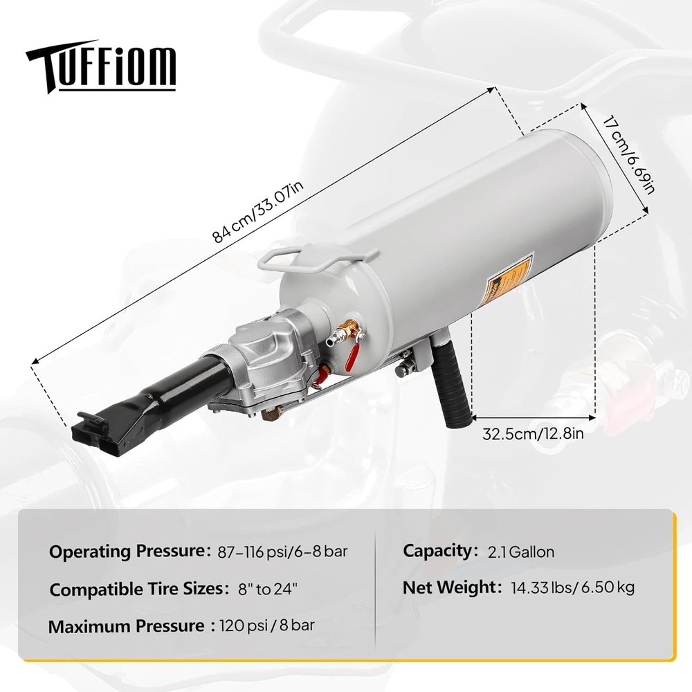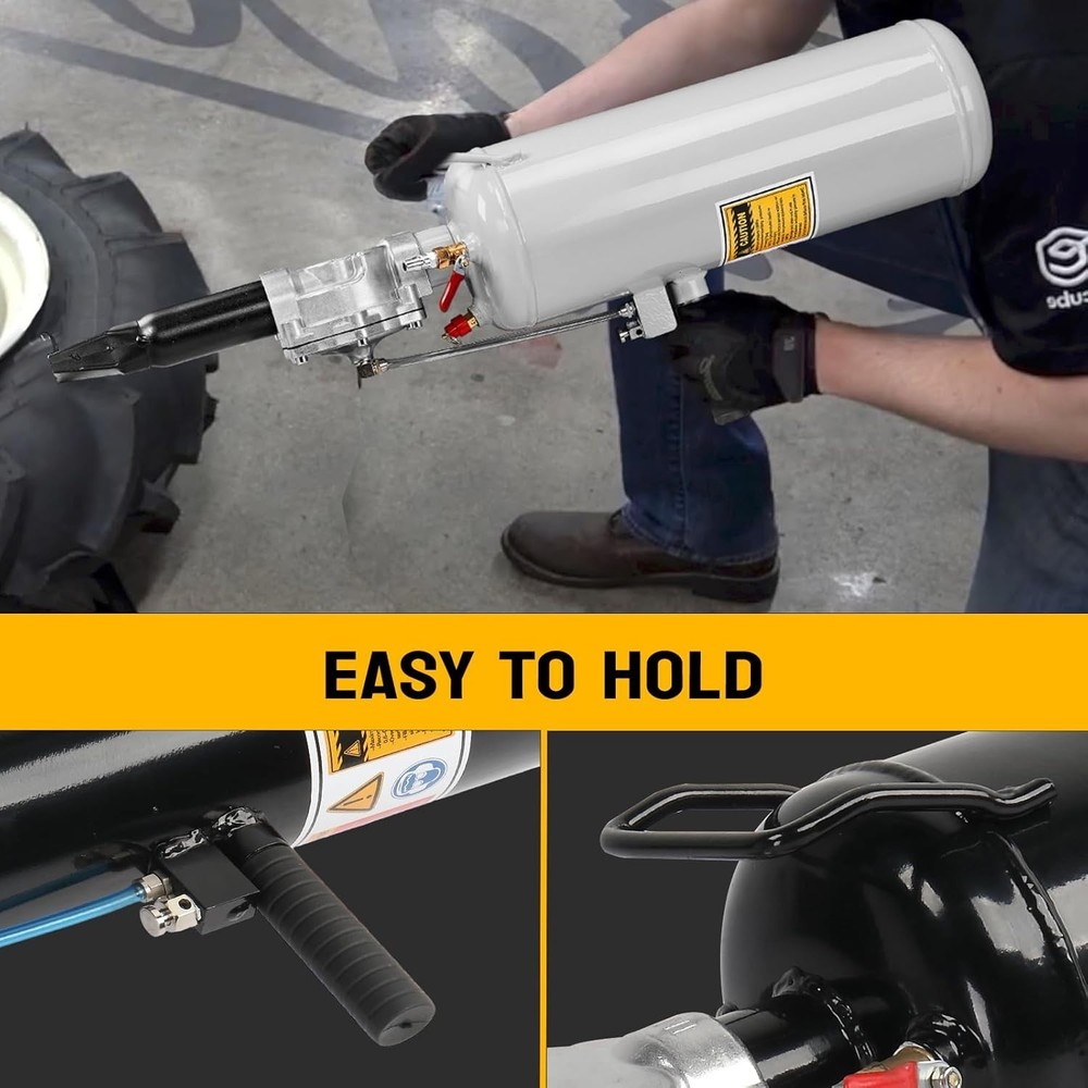 PRESSURE GAUGE EQUIPPED: The tire bead seater comes with a pressure gauge, which can help you read and adjust the air pressure for various vehicles more accurately. And the working pressure of the bead seater is 0.6-0.8MPa (87-116PSI). QUICK AIR INFLATION: Seating the tire bead can be done quickly after correctly putting the lip at the tube end between the tire and wheel rim and then pressing the trigger. And it is designed with handle, which makes it more convenient for you to hold the tire bead blaster. (NOTE: Please wear eye and ear protection before seating the tire.) SAFETY VALVE FOR ADDED SECURITY: The tire bead seater is designed with a safety valve. The safety valve will pop off automatically for added security when the air pressure exceeds 0.8MPa. And it comes with a long neck tube, which can keep you at a safe distance during operation. COMPACT: The bead blaster tire inflator is compact in size. It will be convenient for you to carry it with you and it won’t take up too much space. Besides, it is made of fair quality steel, solid and durable. WIDE APPLICATION: The bead seater is applicable for a wide range of tires, such as tires of motorcycles, electric bicycles, cars, ATVs, etc.