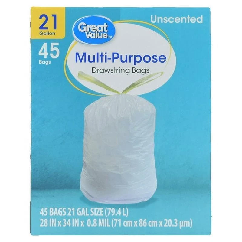 You may also like Folding Luggage Cart Transport Moving Cart Hand Truck, Black, 75lbs Capacity 33.06 USD Free shipping 3-Burner Gas Stove for Big Outdoor Cooking 30000 BTU 608 Sq in Cooking Space Red 448.86 USD Free shipping Ultra Light Flexible Quarter Inch 100 Ft Air Hose Perfect Roofers Contractors 49.05 USD Free shipping Heavy Duty Carport Canopy Extra Large Portable Car Tent Garage W/Roll-Up Windows 329.17 USD Free shipping Strong Suction Stick Vacuum Cleaner Lightweight Corded Hardfloor Adjustable Tube 51.87 USD Free shipping 6 Piece Plastic 192 In Super Wide Baby Gate Play Yard 2 In 1 Ages 6 24 Months 79.79 USD Free shipping Commercial Lightweight Backpack Baggged Vacuum Cleaner for Carpet & Hard Floors 421.94 USD Free shipping Beveled Mirror Medicine Cabinet 12 X 36 In Frameless Durable Plastic Adjustable 76.12 USD Free shipping Rolling Sewing Machine Storage Transport Tote Triangles W/ Wheels Clear Pockets 63.84 USD Free shipping 12V UltraSafe Portable Lithium Jump Starter Car Battery Booster Pack Powerbank 432.83 USD Free shipping Professional Compact 120V Bench Grinder Sharpenern Garage All Chainsaw Chains 282.14 USD Free shipping Bread Box Steel Fingerprint Proof 21 X 11 X 8 In Handy Large Capacity Durable 77.75 USD Free shipping Great Value-Multipurpose Drawstring Trash Bag 21-Gallon, Unscented, 45 Bags. Make the smart choice for your waste disposal needs - Choose our 21-gallon drawstring trash bags for a superior and hassle-free experience. Whether you're dealing with kitchen waste, office garbage, or general household trash, these 21-gallon drawstring bags are versatile enough to handle it all. Their ample size makes them suitable for various waste disposal needs, promoting a cleaner and more organized living or working space. Each box of our 21-gallon drawstring trash bags is thoughtfully designed for your convenience. The bags are neatly packed and easy to dispense, saving you time and effort during the replacement process. Order your pack today and elevate your trash disposal game! Experience the perfect blend of strength and convenience. 21-Gallon capacity (79. 4L) Pack of 40 unscented Great Value Multi-Purpose Bags with drawstrings. Bags come in convenient leaf-roll packaging for easy, one-bag dispensing. 17 Qt Plastic Stackable Closet Storage Box Snap Tight Lid Keep Dust Clear Set 6 34.06 USD Free shipping 28 Quart Storage Box Container Bins Plastic Clear View Stackable W/ Lid 6 Pieces 47.71 USD Free shipping Kitchen Enamel Dinnerware Set Steel Spoons Mugs Bowls Plates Camping 24 Piece US 53.16 USD Free shipping 6 Speed Performance Hand Mixer Includes Case 5 Attachments Stainless Steel New 35.86 USD Free shipping Kids Modern Classic Video Rocker Gaming Chair Faux Leather Mesh Comfortable New 58.9 USD Free shipping Ultra Light Flexible Quarter Inch 100 Ft Air Hose Perfect Roofers Contractors 49.05 USD Free shipping 7 Qt Manual Slow Cooker Non-stick Removable Cooking Surface Mperature Control 42.3 USD Free shipping Classic Video Rocker Gaming Chair Kids Teens Faux Leather Mesh Light Weight Blue 58.9 USD Free shipping Side Storage Student Desk Give Your Student Perfect Spot Finish Homework White 62.84 USD Free shipping Hand Held Shower Head Powerpulse Massage 7 Spray Modes Anti Clog Nozzles Chrome 52.52 USD Free shipping 15-Piece MM Combination Wrench Set W/ Tool Pouch Chrome Finish Rust Resistant 46.52 USD Free shipping Folding Luggage Cart Transport Moving Cart Hand Truck, Black, 75lbs Capacity 33.06 USD Free shipping