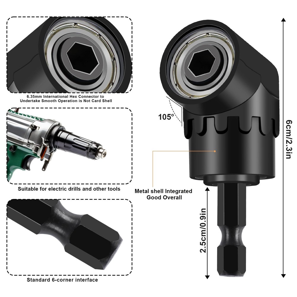 21 Pcs Right Angle Drill Attachment Set Includes 2Pcs Flexible Drill Bit Extension 3Pcs 360° Rotatable 1/4 3/8 1/2" Impact Grade Socket Adapter 3Pcs Drill Bit Holder 10 Short Screwdriver Bits Flexible Drill Bit Extension 【Perfect Drill Tool Set】 You will get 2 piece of flexible drill bit extension, 2 pieces of 105° right angle drill bit extensions (long and short), 3 pieces of 360° Rotatable hex shank driver drill bits, 1 of 90 right angle screwdriver (L-shaped double-ended socket) wrench, 3 drill bit holders, 10 piece screwdriver bit set. Provide a variety of tools that are sufficient to meet your daily needs. 【Bendable drill bit extension】Flexible drill bit extension shaft can bend, twist, and rotate 360 degrees without dead angles, is suitable for working in narrow spaces. It is suitable for environments where screwdrivers cannot work in narrow spaces such as computer cases, electrical cabinets, furniture, appliances, etc. Let our flexible drill bit extension tool help you quickly solve more problems. 【105 ° Right Angle Drill Accessories】 The set includes 2 pieces of 105 ° Right Angle Drill Accessories (long and short) made of high-quality steel material, which can be quickly replaced and rust resistant. It is suitable for drill bits, manual wrenches, rechargeable drills, and screwdriver chucks. Can work in narrow spaces. 【3 Pcs power drill sockets adapter sets】This is a multifunctional 3-piece electric drill socket adapter set that can rotate 360 ° and is used for the installation of electric screwdrivers, manual screwdrivers, hand drills, and other hexagonal tools. This is a great conversion accessory suitable for universal sleeves, impact adapters, sleeve adapters, and drive reducer kits 【L-shaped wrench and drill bit holder】 The L-shaped double head socket has 1/4 inch/6.35mm heads at both ends, suitable for various screwdriver heads, and can be used to drive different types of screws; The handle is comfortable to grip, non slip, and stable. Three 1/4 inch hexagonal handle magnetic extended chuck adapters with quick release lever socket screwdriver head brackets, including lengths of 60mm, 100mm, and 150mm. 【Widely used】 Our flexible drill bit set is mainly used in computer cases, furniture, appliances, and other narrow spaces, suitable for homes, garages, technicians, carpenters, and so on. Shipping from the USA All of our products are shipped from the USA, ensuring quick delivery to your destination. Payment We offer the following payment methods: PayPal, credit card, bank transfer, and eBay's secure payment system. Free Shipping & Free Returns Shipping within the USA is FREE. Additionally, any return is absolutely free for you. Risk-Free Purchase You have the option to return an item within 30 days without any justification. We cover the return shipping costs! Fast Shipping We ship immediately upon receipt of payment. Generally, the package is delivered within 2-3 days in the USA. If it takes longer, we will contact you. Quality and Costs Made in Europe, USA, China No customs fees or additional charges Total satisfaction guarantee Invoice with declared VAT available upon request in .pdf format Feedback Your feedback is very important to us. After you pay for your purchase, you will automatically receive positive feedback from us.