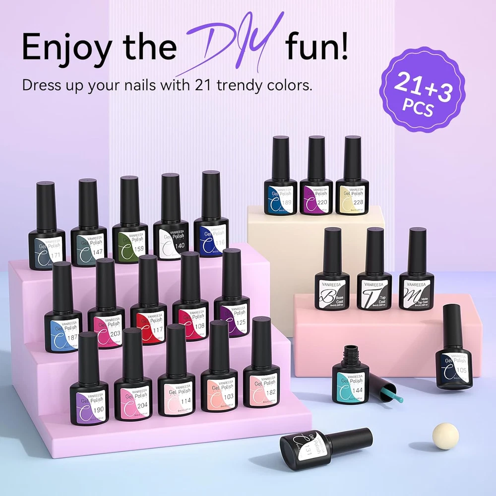 21 Popular Colors Gel Nail Polish Set 24 Pcs Gel Nail Polish Kit Glossy & Matte