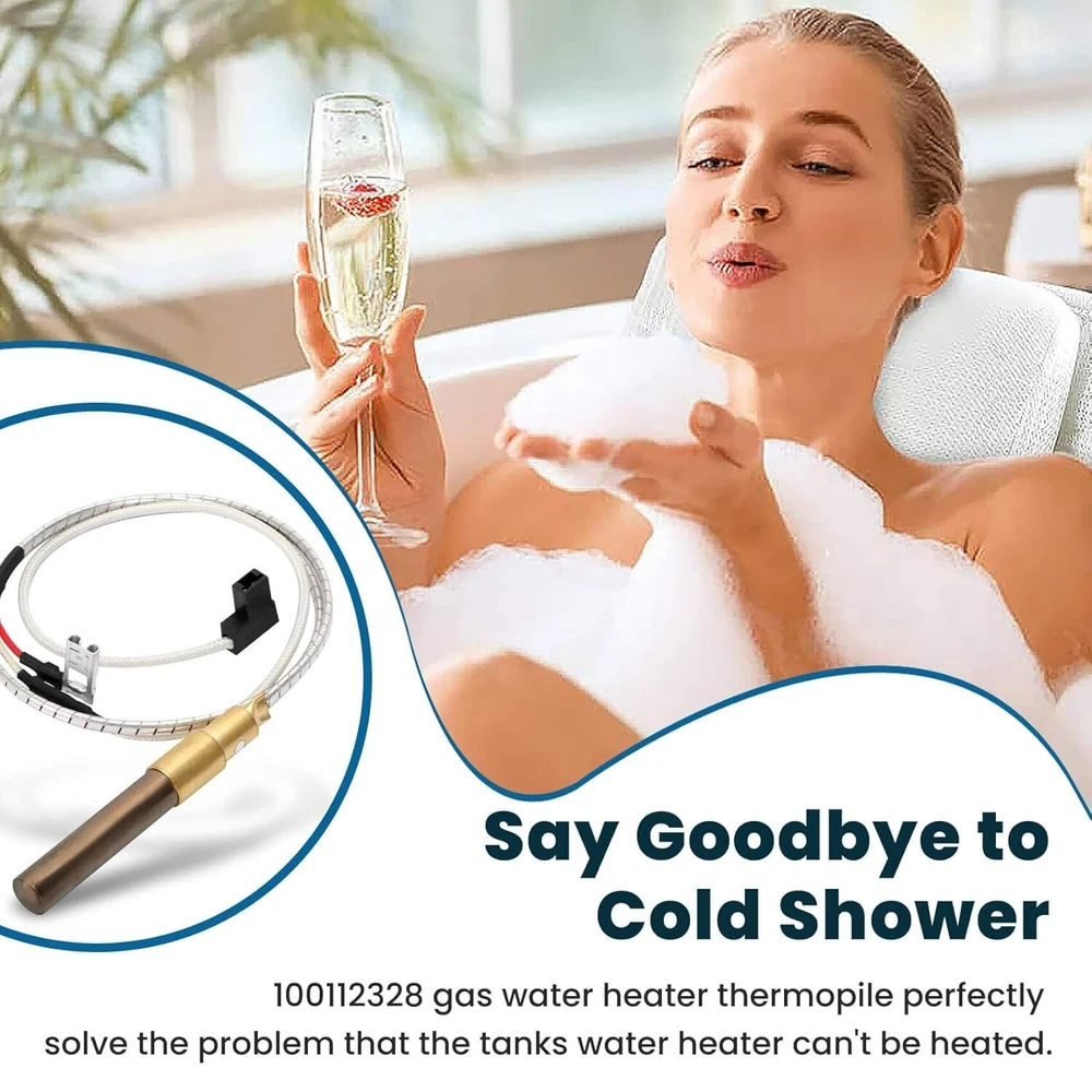 【Note】Please read the compatibility carefully before Ordering this item, refer to the description in the listing. 100112328 water heater thermocouple may look the same, but there may be slight differences in size and shape. 【Solve Problems】replace the 100112328 thermocouple can solve: water heater indicator light does not light up, water heater does not heat up and damaged thermocouple, after replacing it, your water heater will be back to normal operation. 【Widely Used】 Compatible with Reliance, Whirlpool, A.O. Smith, Kenmore, State, American Water Heater. Replaces old A.O. Smith # 6911197, 9007872005, 100094024.Does not fit Reliance C3 FAIR and C3 FVIR water heaters. 【Compatible with Whirlpool Water Heater】N30T61-303, N40T61-403, N40T62-403, N50T61-403, N50T62-403, N50T91-403, N40T61-353, N40S61-403, N40T121-403, 40S6-40NG, 40T6 -34NG-400, 40T10-40NG-400, 50T6-40NG-400. 【Compatible with America Water Heater 】 N30S61-303, N30T61-303, N40S61-403, N40T61-343, N40T62-403, N40S91-403, N40T91-403, N40T121-403, N50T61-403, N50T61-504, N50T91- 403, n50t122-403, bfg6140t403no 【Compatible with A.O.Smith Water Heater】GS6-300, GCV-300, GPX-300, GVK-300, XCZ-300.