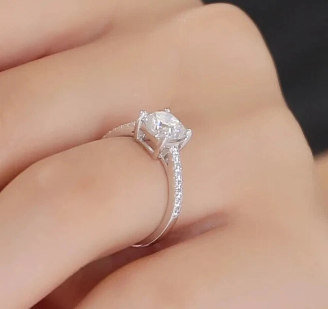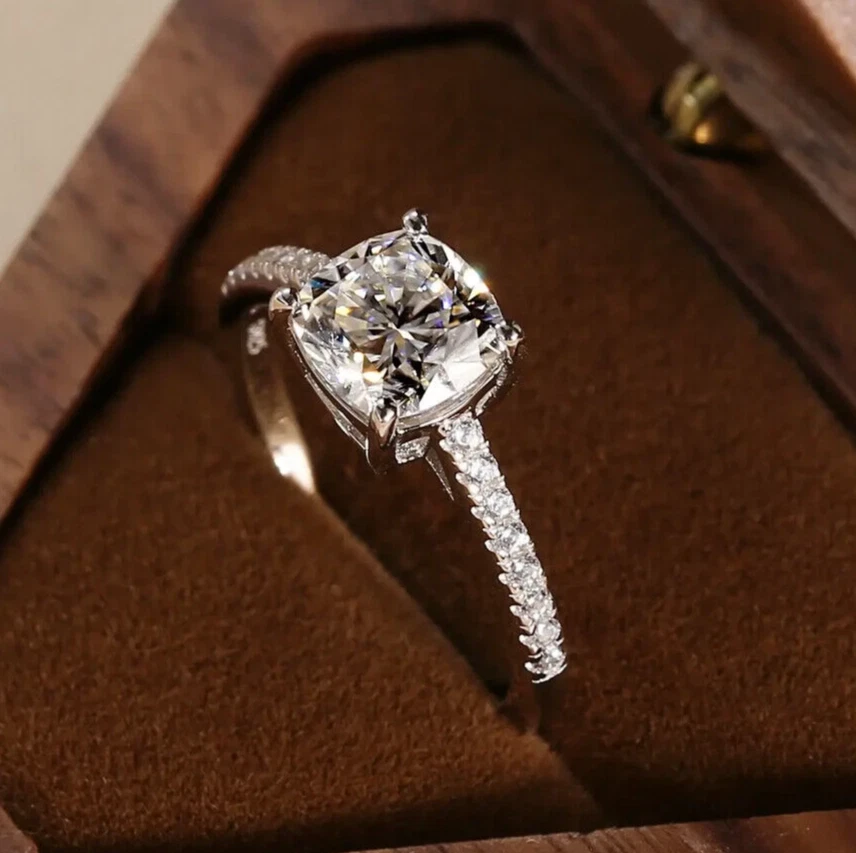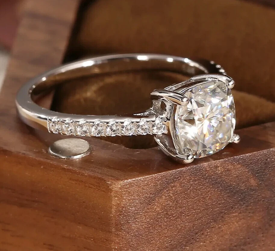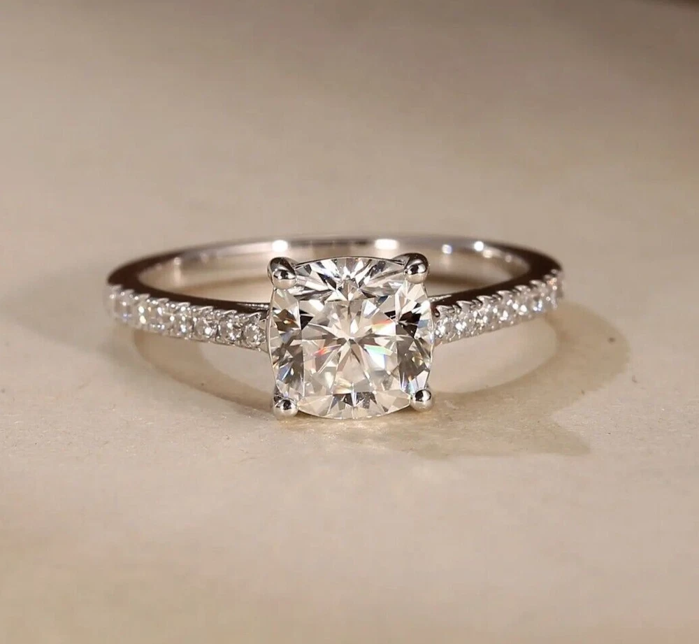 Main Stone Creation: Lab-Created Main Stone: Moissanite Brand: dreamofmoissanite03 Sizable: Yes Features: Engraved, Nickel-Free Customized: Yes Theme: Beauty Certification: DGLA Metal: White Gold Plated Department: Women Material: Metal Main Stone Width: 7 mm Band Width: 2 mm Vintage: No Main Stone Length: 7 mm Diamond Clarity Grade: Very, Very Slightly Included (VVS1) Personalize: Yes Number of Gemstones: 0 Ring Size: 7 Wholesale: Yes Number of Diamonds: As per image Type: Engagement Ring Handmade: Yes Personalization Instructions: We can customize as per your requirement Color: White Diamond Color Grade: D Metal Purity: 925 Colored Diamond Intensity: Fancy Secondary Stone: Moissanite Main Stone Treatment: Not Enhanced Setting Style: Solitaire with Accents Total Carat Weight: 2.00 ctw - 4.99 ctw Main Stone Color: White Base Metal: Sterling Silver Gemstone Clarity Grade: Eye Clean Seller Warranty: Yes Main Stone Shape: Cushion Antique: No Cut Grade: Excellent