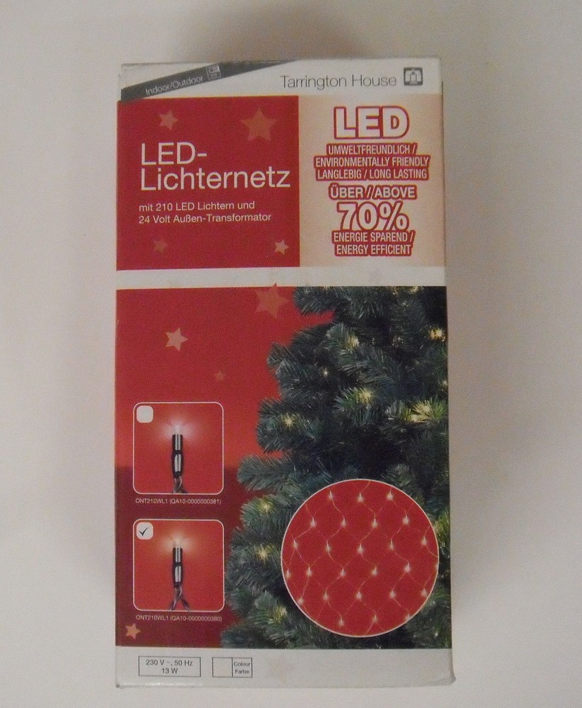 210 LED Light Net Christmas Lights Warm White 216cm x 120cm Indoor & Outdoor The description of this item has been automatically translated. If you have any questions, please feel free to contact us. 210 LED light net Christmas lights warm white 216cm x 120cm indoor & outdoor W We offer you a new LED light network. Equipment: Light network with 210 LED lights LED color: warm white for Suitable for indoor and outdoor use Illuminated length: 216cm Depth: 120cm Supply line: 1000cm Transformer input: 230~, 50 HZ Output: 24V~, 15.6VA Protection class: IP44 210 LED light net Christmas lights warm white 216cm x 120cm indoor & outdoor WWe offer you a new LED light network. Equipment: Light network with 210 LED lights LED color: warm white for Suitable for indoor and outdoor use Illuminated length: 216cm Depth: 120cm Supply line: 1000cm Transformer input: 230~, 50 HZ Output: 24V~, 15.6VA Protection class: IP44