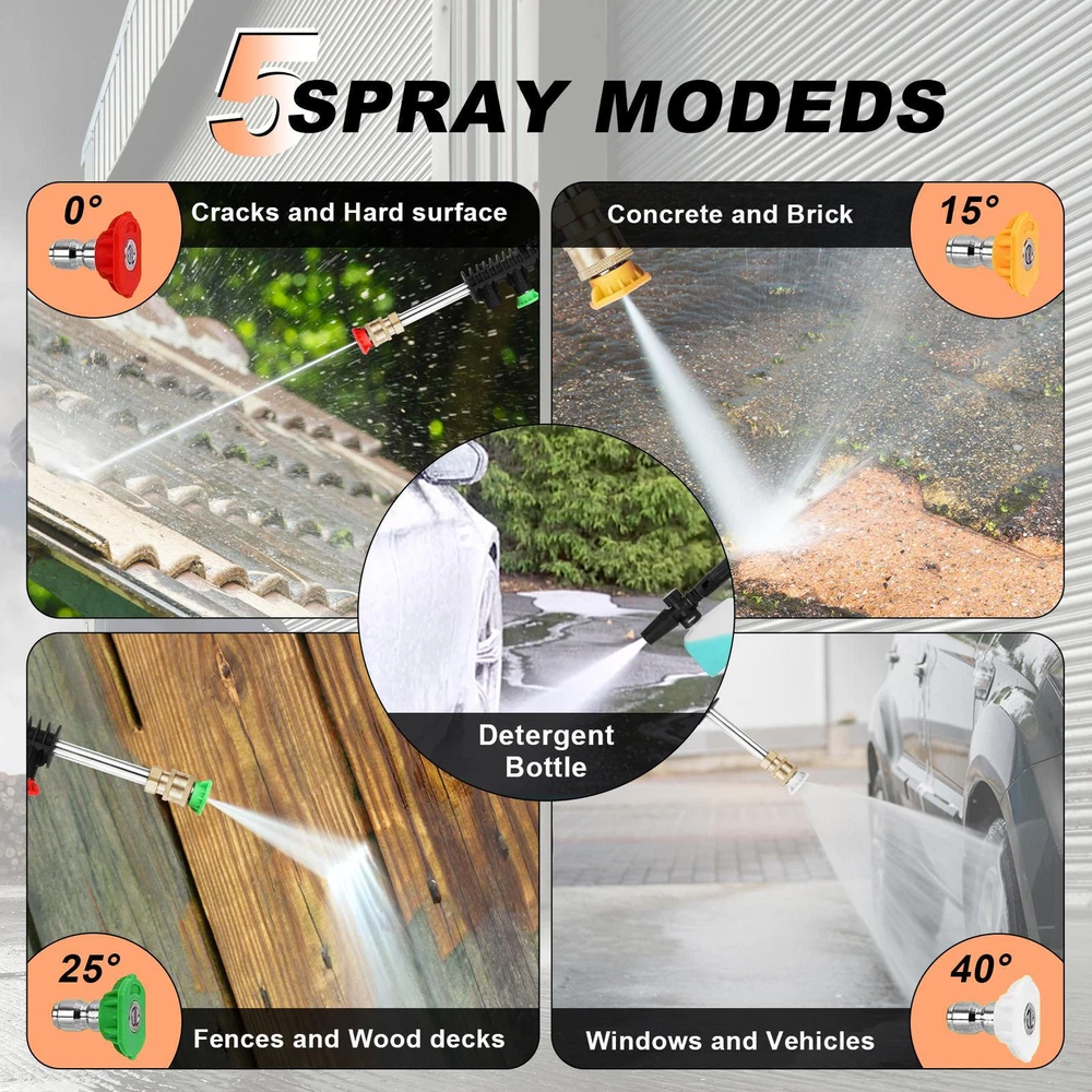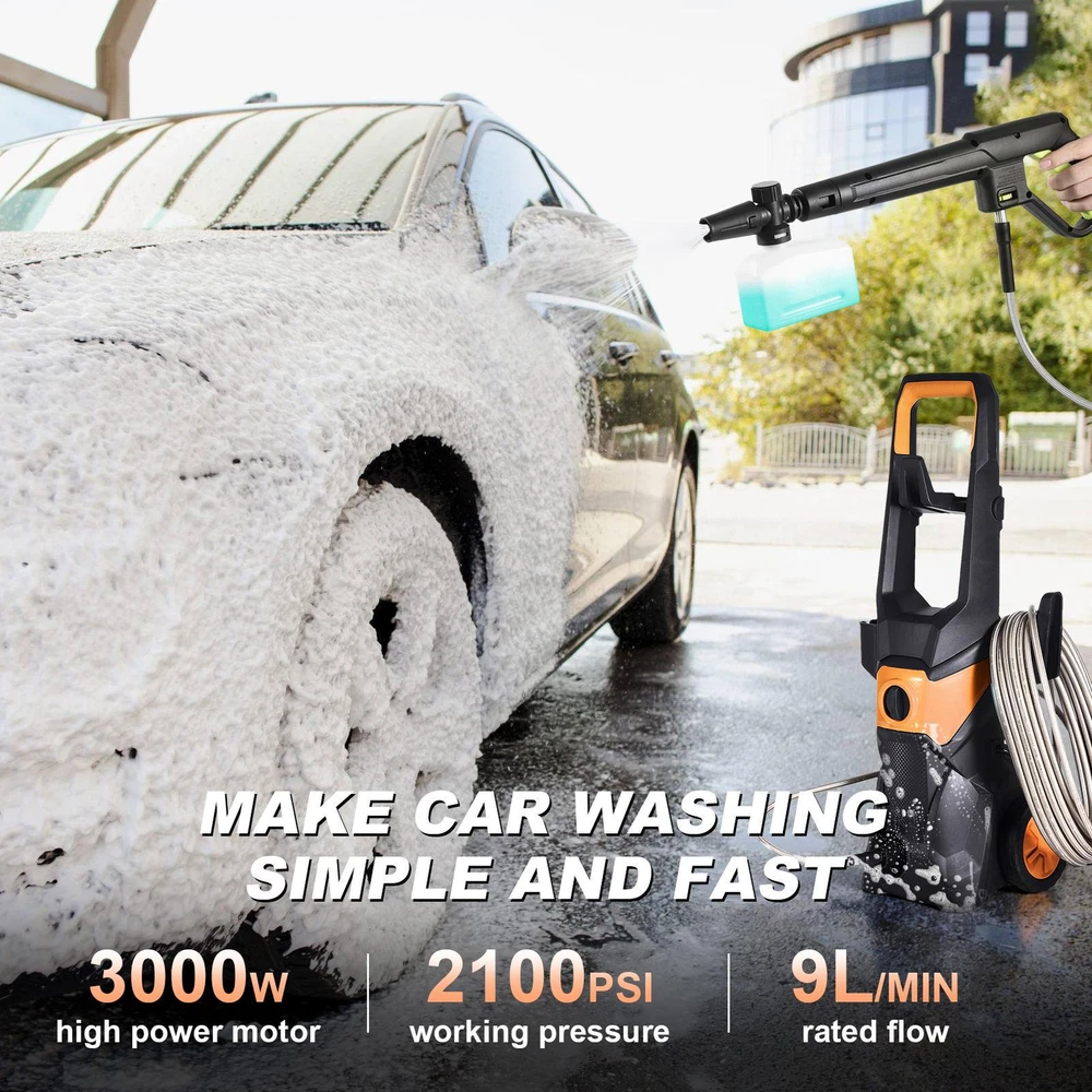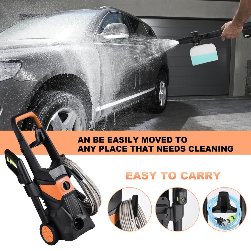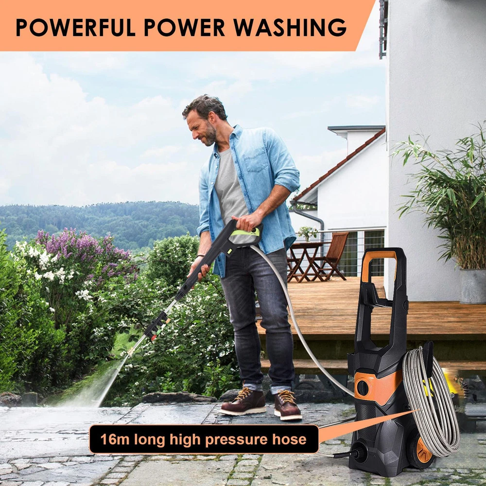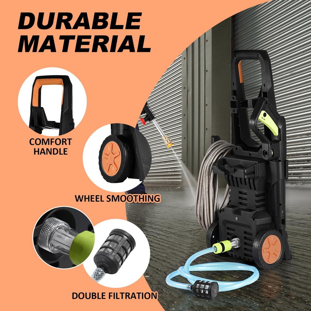 Electric Pressure Washer 2100 PSI 150 Bar High Pressure Washer Power Wash Bullet Points: Maximum Cleaning Capacity: Equipped with a 3000W high-power motor, this pressure washer ensures quickly clearing of various stubborn stains, generating a work pressure of up to 2100PSI for efficient cleaning of dust on car surfaces, oil stains on furniture, or dirt in the yard Convenient Choice: Connect directly to faucet or manually add water via bucket/containers. Efficient car wash with flexible water collection for any setting. Two methods available for easy cleaning Effortless Mobility: With its stable wheel design, this car wash pressure washer can be easily moved to any location for indoor or outdoor cleaning, saving energy and worry. Say goodbye to the struggle of carrying heavy equipment and enjoy the freedom to clean wherever you please Stable Maintenance: Maintain stability in any rugged environment with this car wash pressure washer's long-term use of high-quality stainless steel, PP, copper and aluminum materials Versatile Cleaning Solution: Not just for car cleaning and maintenance, this pressure washer tackles property, patio, floor, and furniture cleaning needs, making it an indispensable tool to have at home This electric pressure washer generates up to 2100PSI of work pressure, directly connected to your faucet for easy use. Save energy and worry with high-quality stainless steel, PP, copper, aluminum construction. Perfect for car washes and other cleaning tasks. Specification: Product name: water pressure washer Material: stainless steel, PP, copper, aluminum, etc. Power: 3000W Voltage: 110V Working pressure: 2100psi Maximum pressure: 150bar Spray Speed: 5.6L/min Maximum water temperature: 60℃/140°F Application scenarios: car, furniture, gardens, floors, etc. Features: with wheels, two ways to get water Packing list: 1 *electric pressure washer 1 *1.5m power cord 1 *1.8m water inlet pipe 1 *water inlet three-set (large net) 1 *high-pressure sprayer 1 *16m high-pressure pipe 1 *foam pot 1 *connector 1 *instruction manual 4 *water sprayer heads We accept PayPal payment,PayPal Credit,Credit card or debit card and so on. Payment should be completed within 4 (Four) days of auction closing. Or unpaid dispute will be filed for closing auction. We will leave a positive feedback immediately after payment is received. We appreciate a positive feedback as much as you do. If for some reason there is any issue with the purchase, please contact us prior to leaving feedback, we will be glad to work together and provide a satisfying solution. 1. We ship to your eBay address. Each package will be shipped via FedEx or UPS 2-8 business days with tracking number 2. Please check your shipping address carefully before checkout, it can't be changed if order completed. 3. Shipping within 1 business days once payment completed. Orders placed on weekend will be delay 1-2 days. 4. Please allow 6 business days for delivery to any destinations. 5. As a buyer, it is your duty to pay the tax when you make an order from abroad. Our price does not include taxes, VAT, or other hidden charges. 1. We maintain high standards of excellence FIVE STAR and strive for 100% customer satisfaction! 2. Positive Feedback is very important to us. We hope that you contact us immediately BEFORE you give us neutral or negative feedback, so that we can satisfactorily address your concerns. 3. We promise to offer the best price and high quality products. 1. If you have any questions, please send a ebay message. 2. We will reply within 48 hours of your email. Weekend will be delayed a bit.