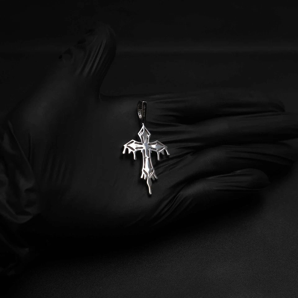 2.10Ct Round Cut Real Moissanite Drip Cross Men's Pendant 14K White Gold Plated
