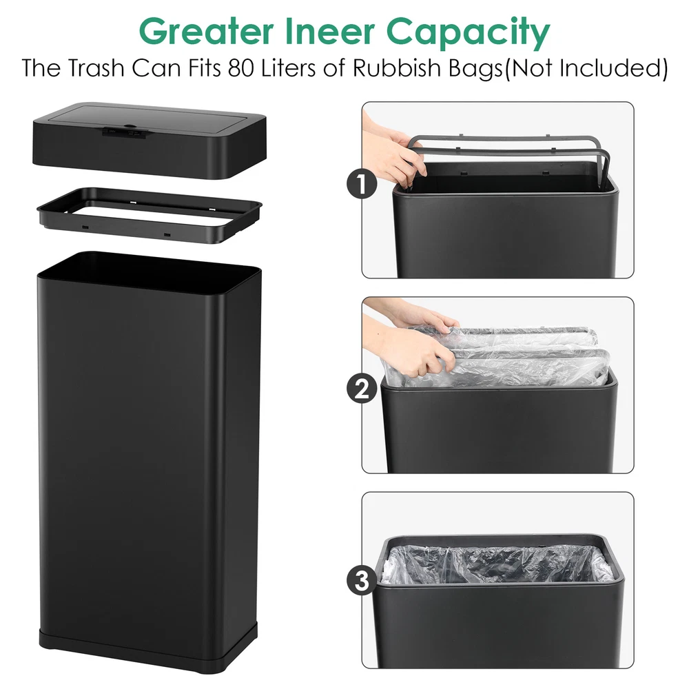 Description: Yiwsz-0 Your Best Online Business Partner 21.1 gal / 80L Automatic Trash Can Stainless Steel Motion Sensor Garbage Can Description: 【Smart Sensor & Soft Close】Garbage can features advanced auto-sensing technology and a silent closing lid, which opens and closes slowly and silently. You only need to place your hand close to the 5.9" (15 cm) sensing area to trigger the sensor to open the lid, the response time is about 1S and blue display lights turn on, when the last display light goes after 9 seconds, the lid will close automatically. 【Stay-Open Mode】During food preparation or cleaning, you can touch the "open" button to keep the lid open for 3 minutes. If you want to close it faster, just touch "off" and the lid will close slowly and silently.Garbage Bin Requires 6 AA Batteries ( not included ). Note: When the battery power reaches 4.8V, the display lights will illuminate red. 【Premium Material & Easy to Clean】Automatic trash can is made of high-quality stainless steel, and brushed surface, which is fingerprint-resistant. Smart sensor hands-free operation keeps your trash clean longer. If you want to clean the trash bin, just remove the lid, wipe it with a cloth. 【Removable Liner】Multifunctional kitchen trash can is designed with a removable liner ring, can hold the bag firmly in place and also hide the trash bag well, making the trashcan more beautiful. And removable liner ring has an easy-grip handle to easily change trash bags for cleaning. 【21.1 Gal Large Capacity】Large 21.1 Gallon capacity can hold a large amount of garbage.Without an inner bucket, it has 25% more capacity than the same size. The wide lid opening can easily accommodate large items, no need to change garbage bags frequently, saving your time. Suitable for office, living room, bedroom. Features: 1.High-Quality Stainless Steel Material Is Easy to Clean 2.Soft Opening and Closing for A Quiet User Experience 3.Two Opening Modes: Sensor and Button 3.The Removable Liner Makes It Easy to Replace Garbage Bags 4.Large Capacity Meets The Needs of A Variety of Daily Scenarios Package Includes: 1*Trash Can Item Specifics Brand Unbranded Item Height 33.6 in Item Length 16.1 in Item Width 10.4 in Type Sensor Trash Can Capacity 21 gal Room Home Office/Study Color Black Material Stainless Steel Features Automatic Number of Compartments 1 Size Large Suitable For General Waste Shape Rectangle Payment We only accept Payoneer payment. Shipping We will ship out your item within 24-48 business hours after payment received; We don't process orders on weekends and holidays. Returns 30 day returns. Full / Partial Money Back, or Replacement. Contact Us If you have ANY problems, please feel free to let us know, we'll get back to you ASAP and do our bets to resolve it. Yiwsz-0 Your Best Online Business Partner DESCRIPTION PAYMENT SHIPPING RETURN POLICY CONTACT US Store Category Store Home Kids Slide Garbage Can Indoor Furniture Home & Garden Pet Supplies Hot Item 8 gal Stainless Dual Trash Can Kitchen Step Garbage Can Classified Recycle Bin USD 79.99 60L Dual Trash Can Stainless Steel Step On Garbage Can Recycling Bin with Lid USD 129.99 8 Gallon Trash Can, Rectangular Step On Kitchen Trash Can, Stainless Garbage Can USD 59.99 60L / 16 Gal Dual Kitchen Trash Can,Stainless Steel Garbage Can Recycle Dustbin USD 129.99 60L / 16 Gal Dual Trash Can Stainless Steel Kitchen Garbage Bin Recycle Dustbin USD 129.99 New List Item Set of 2 Folding Zero Gravity Chairs Outdoor Lounge Recliner with Holding Tray USD 89.99 10x10 FT Pop Up Tent Canopy Gazebo Event Outdoor Portable Tent Waterproof USD 169.99 Motion Sensor Kitchen Trash Can Stainless Steel Garbage Can Touchless 21.1 Gal USD 99.99 Set of 2 Zero Gravity Chairs Folding Lounger Chair Outdoor Patio Recliner Chair USD 89.99 Zero Gravity Lounge Chair Set of 2 Folding Recline Beach Lounge Patio Chair USD 89.99 Help & Info Payment Policy Shipping Policy Return Policy FAQ About Us 21.1 gal / 80L Automatic Trash Can Stainless Steel Motion Sensor Garbage Can Description: 【Smart Sensor & Soft Close】Garbage can features advanced auto-sensing technology and a silent closing lid, which opens and closes slowly and silently. You only need to place your hand close to the 5.9" (15 cm) sensing area to trigger the sensor to open the lid, the response time is about 1S and blue display lights turn on, when the last display light goes after 9 seconds, the lid will close automatically. 【Stay-Open Mode】During food preparation or cleaning, you can touch the "open" button to keep the lid open for 3 minutes. If you want to close it faster, just touch "off" and the lid will close slowly and silently.Garbage Bin Requires 6 AA Batteries ( not included ). Note: When the battery power reaches 4.8V, the display lights will illuminate red. 【Premium Material & Easy to Clean】Automatic trash can is made of high-quality stainless steel, and brushed surface, which is fingerprint-resistant. Smart sensor hands-free operation keeps your trash clean longer. If you want to clean the trash bin, just remove the lid, wipe it with a cloth. 【Removable Liner】Multifunctional kitchen trash can is designed with a removable liner ring, can hold the bag firmly in place and also hide the trash bag well, making the trashcan more beautiful. And removable liner ring has an easy-grip handle to easily change trash bags for cleaning. 【21.1 Gal Large Capacity】Large 21.1 Gallon capacity can hold a large amount of garbage.Without an inner bucket, it has 25% more capacity than the same size. The wide lid opening can easily accommodate large items, no need to change garbage bags frequently, saving your time. Suitable for office, living room, bedroom. Features: 1.High-Quality Stainless Steel Material Is Easy to Clean 2.Soft Opening and Closing for A Quiet User Experience 3.Two Opening Modes: Sensor and Button 3.The Removable Liner Makes It Easy to Replace Garbage Bags 4.Large Capacity Meets The Needs of A Variety 