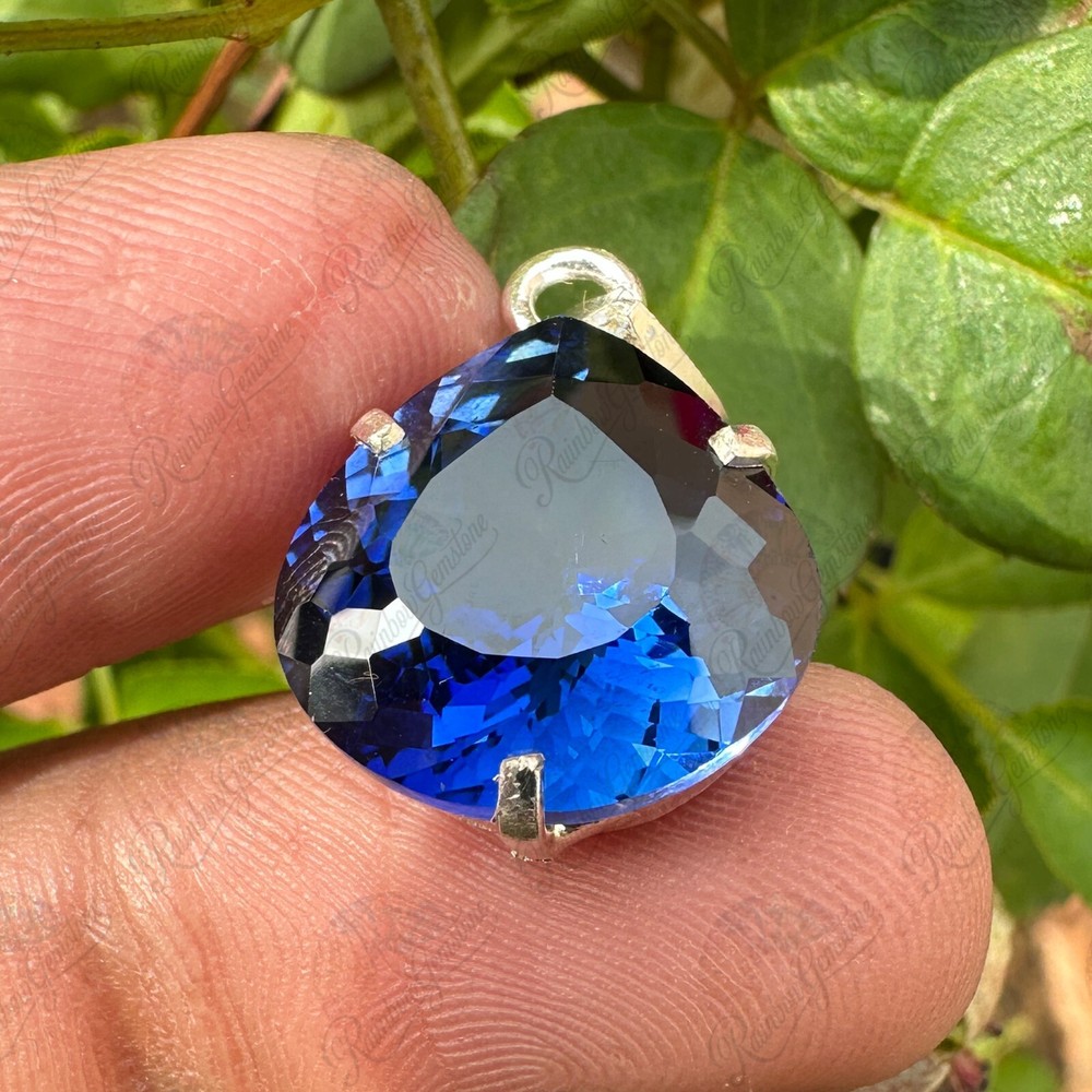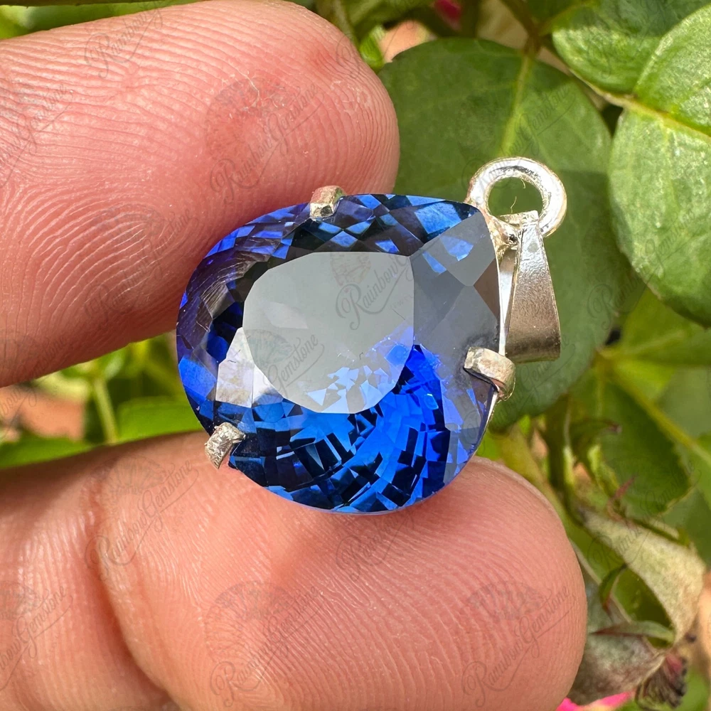11 Ct Natural Blue Sapphire 925 Silver Handmade Pendant