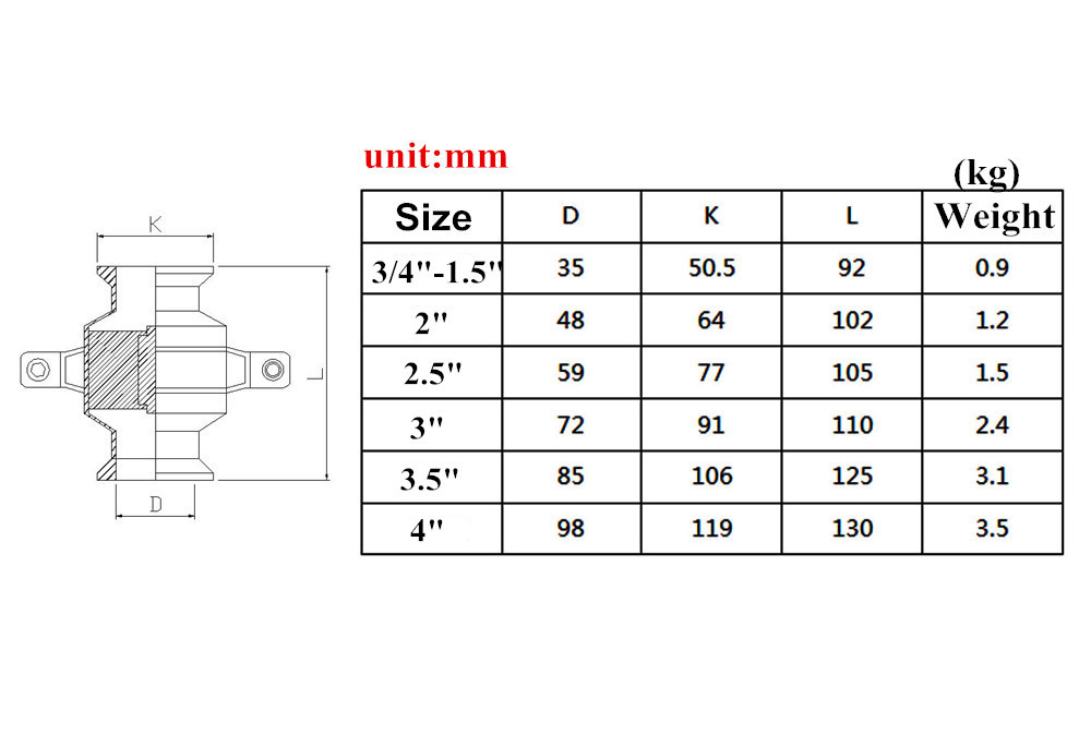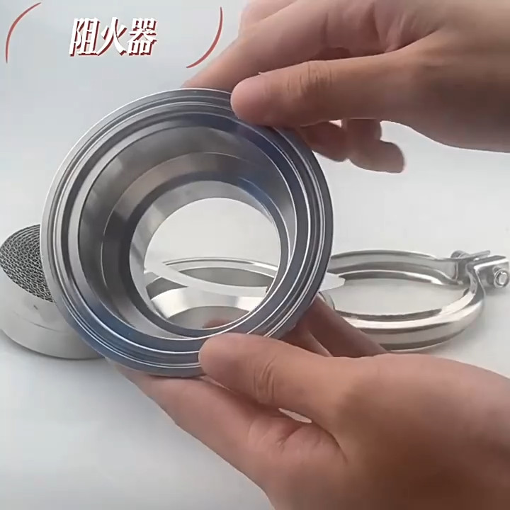 Description 2-1/2" Stainless Steel 304 Tri Clamp OD 77mm Sanitary Flame Arrester Pipe fire filter Well Applied To Stainless Steel Pipe System Widely used in food, brewery, beverage, dairy products, fine chemical pharmaceuticals, bio-engineering, alcohol pipeline, methane and other flammable gas liquid workshop to ensure the safety of pipelines and workshops. Material:304 Stainless Steel Operation: Manual Connection: Clamp OD 77mm Size:2-1/2" Work Pressure: 0.2-0.5Mpa Applicable Temperture: -20℃ ~ +120℃ 1. Description Flame arrestors are safety devices designed to stop the flames of flammable and flammable liquid vapors from spreading outward. It consists of a gas-permeable solid material (fire-retardant element) with many small passages or slits, which require that the gap or passage of the fire-retardant element be as small as possible so that when the flame enters the flame arrester it is broken into many Small flame flow, due to heat transfer (gas is cooled) and wall effects, flame flow quenching. 2.The main use Widely used in heating furnace fuel gas, natural gas, liquefied petroleum gas pipelines, as well as oil and gas recovery, gas purification, gas analysis, coal mine gas emissions and other systems. 3. the installation and maintenance 1), in order to ensure the performance of the flame arrester to achieve the purpose of use, before installing the flame arrester, you must read this manual carefully and carefully check the signs and installed pipeline requirements are the same. 2), flow markers on the flame arrester must be consistent with the media flow. 3), every six months should be checked once. Check the fire barrier is blocked, deformed or corroded and other defects. 4), blocked fire barrier should be cleaned to ensure that each hole smooth, fire or deformation of the fire should be replaced. 5), fire retardant core cleaning, high pressure steam should be used, non-corrosive solvents or compressed air purge, shall not be sharp hardware scrub. 6), re-install the fire retardant layer, the gasket should be updated to confirm the sealing surface has been clean and no damage, shall not leak. 4.Performance advantages Health flame arrester structure is reasonable, light weight, corrosion resistance, explosion-proof performance qualified, easy maintenance, easy installation, one hour without burning test no tempering phenomenon. Flame arrester core made of stainless steel, corrosion-resistant, easy to clean, shell hydraulic test pass. Compared with flame arresters made by other manufacturers, we add a fire core. After the test: a fire retardant core sometimes can not achieve the effect of fire resistance, the two fire cores are positive and negative buckles, can better play the role of fire retardant, safe and secure during use.