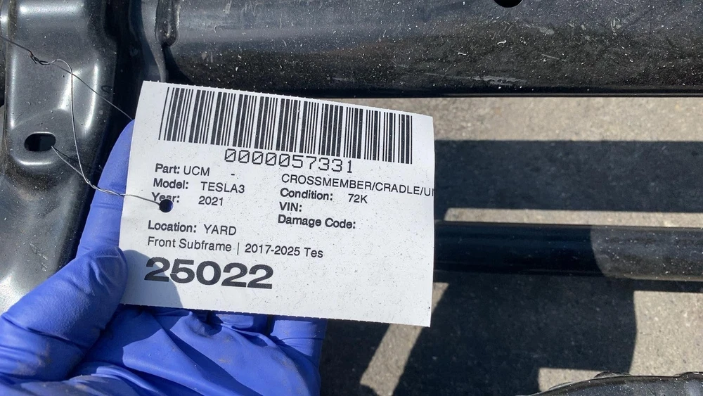 Donut Auto Dismantling Donut Auto Dismantling Rancho Cordova, CA Business Hours (PST/PDT) Mon - Fri 8am - 5pm Closed Sat & Sun Crossmember/cradle/undercarria Year: 21 Model: TESLA MODEL 3 Side: Type: Used Category: ND Condition: 72k Vehicle Stock #: 25022 Part Stock #: 0000057331 Additional notes: Front Subframe | 2017-2025 Tesla Model 3 Y Front Suspension Subframe Structure Cradle Crossmember Interchange: Also fits: Search for more parts from this donor vehicle Search for more parts for TESLA MODEL 3 Dear Valued Customers Before ordering, please verify the part number and compare the physical details of your part with the photos in our listing. Tesla sometimes changes parts within the same model year, so even if the year matches, variations may exist. Examine all photos and read the description. Please contact us and ask any questions you have about the item. What you see in the pictures is what you will receive. Item are sold as Pictured in our ads, All the damages are marked in pictures with colored markings ........ indicated scratches, O indicate dents/dings view all photos and description. All Parts come with a 60-Day warranty Compatibility We are not responsible for compatibility, please order parts with the same part number to avoid delays and fitment issues in your purchase. Always verify O.E.M part numbers check fitment. Shipping & Return Policy For LTL and freight shipments: Please inspect an item before signing. For LTL and freight shipments of large items like Battery Packs, Seats, Doors, Trunks, Hoods, and other sizable body parts, a commercial address is mandatory . This must be a business equipped with a dock or forklift. Please note that deliveries cannot be made to restaurants, office buildings, or hotels. Please allow 5-11 business days from the shipping date to receive freight items. If a forklift is not available to unload your package, please ensure that you added liftgate service fee to your order. Residential deliveries have an extra charge required by LTL to cover liftgate usage and city ordinance. Be advised not all LTL freight companies offer lift gate services in every town especially in rural areas. If you do not have a commercial address or a proper residential address reach out to us to work things out LTL items can always be held at your local hub and made available for pickup. We offer free local pickup Monday through Friday, from 8:00 AM to 5:00 PM. What separates us from our competitors As Pioneers in the Tesla used parts market Donut Auto Parts is leading in the industry. We have been specializing in Tesla's for over 5 years. Our Staff are highly trained and experienced Tesla specialists. We strive to help you solve all your part needs. Local Customers For our local customers we provide installation on battery packs and drive units purchase. Drive unit and battery pack installations come with a 60 day warranty . All parts are fully tested. Using the industries leading tools, we also provide installation of other parts. Please reach out to us directly for more information. Be Advised Programming may be required for most electronic components. Donut Auto Parts is not responsible for any labor costs and other charges such as programming. NO RESTOCKING FEE Payment Payment must be submitted within 48 hours after purchase time. We have a Same handling time when paid by 2pm pst and 3-day handling time for LTL freight items. Feedback and Rating We always Strive to earn positive feedback. If you encounter an issue with one of our items, please contact us before leaving any feedback or opening a case give us the opportunity to solve your order issue. We strive to provide excellent customer service to ensure that everyone is satisfied, and to gain happy and returning customers! ALLOW US TO RESOLVE ISSUES BEFORE LEAVING YOUR FEEDBACK PLEASE CONTACT US FIRST Powered by Checkmate