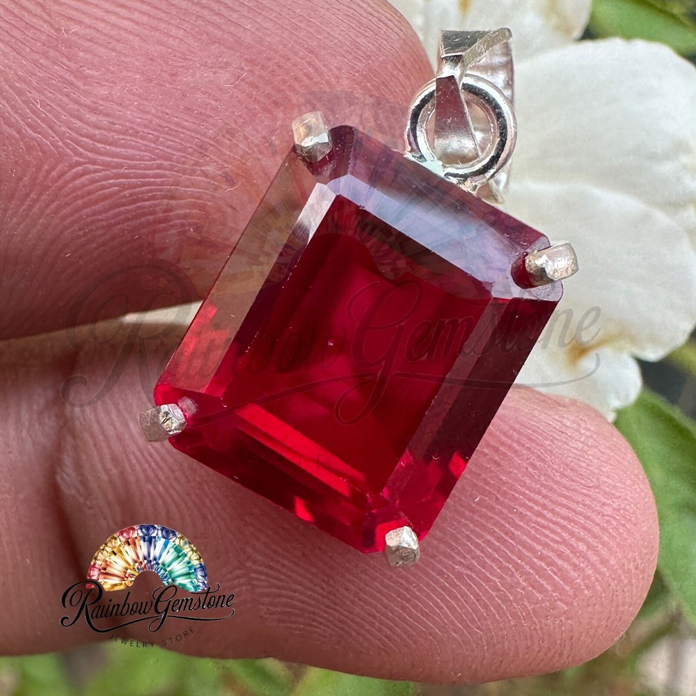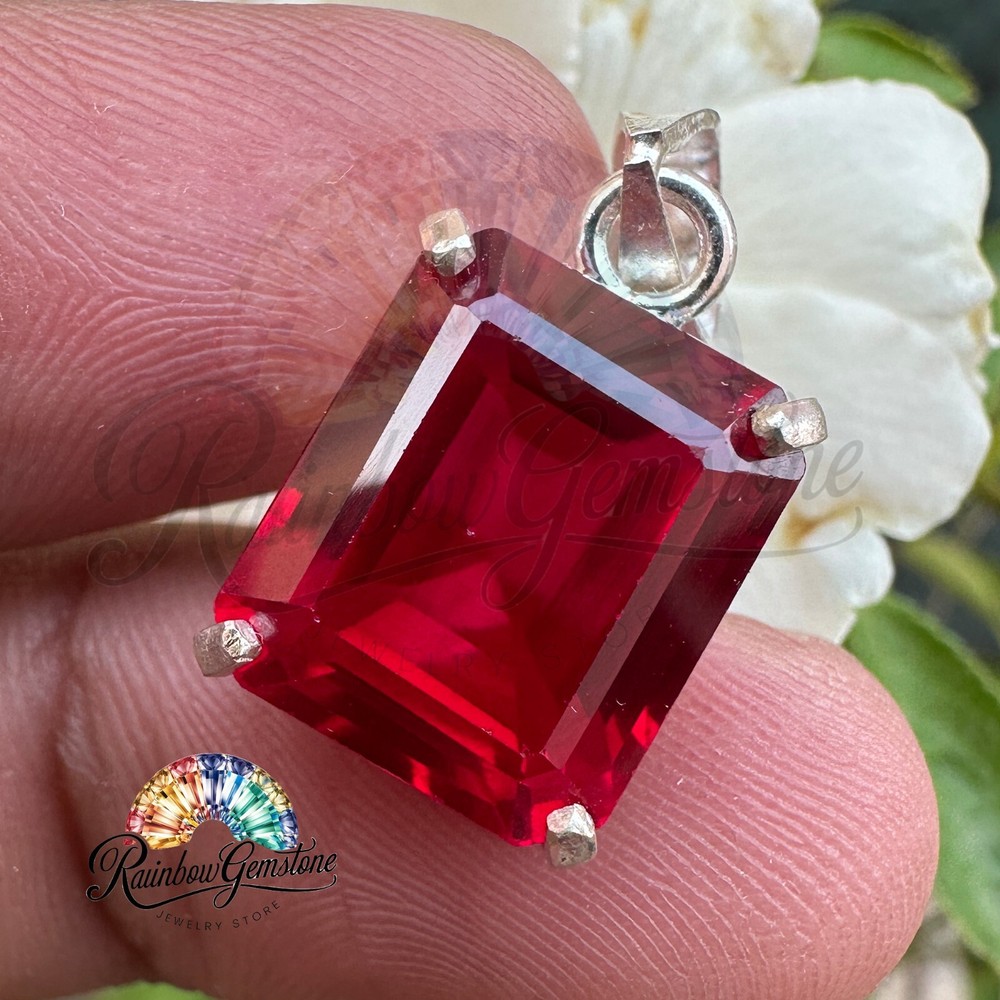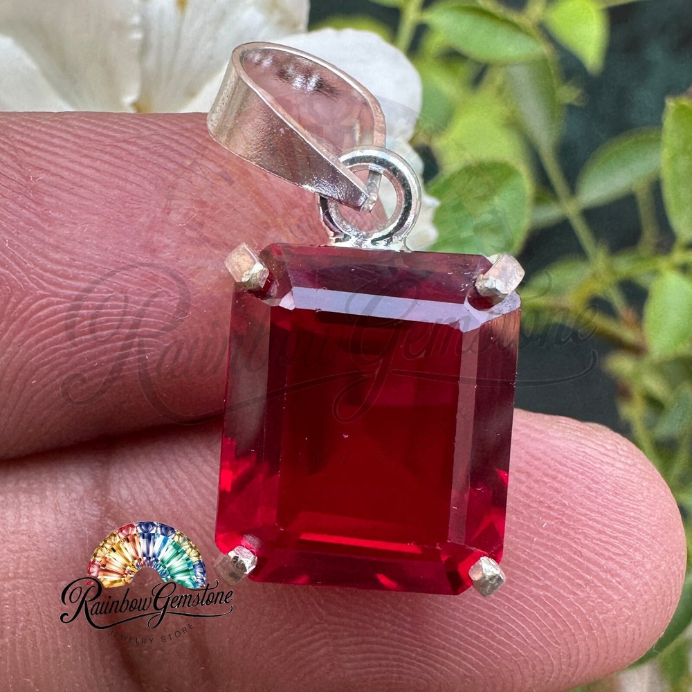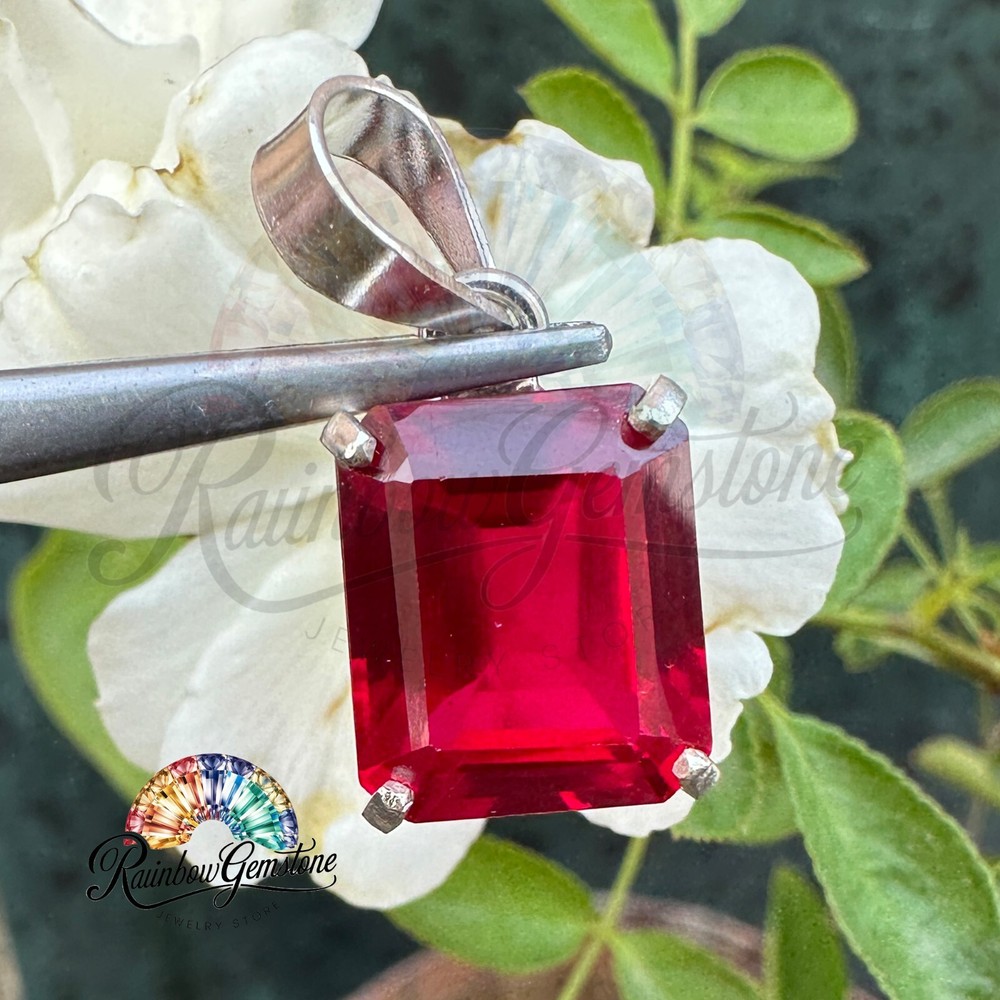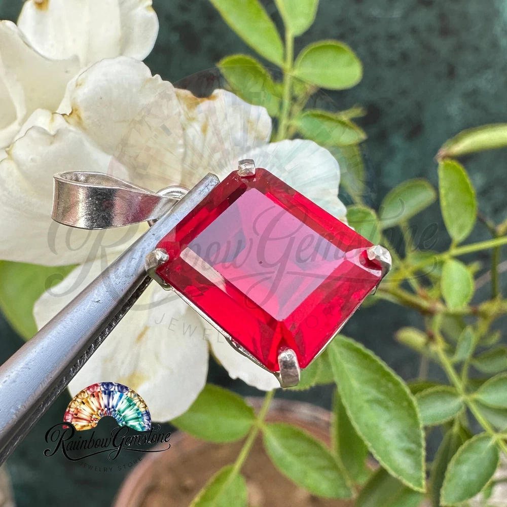 30CT Natural Dark Red Ruby Gemstone in 925 Sterling Silver Radiant Cut Pendant