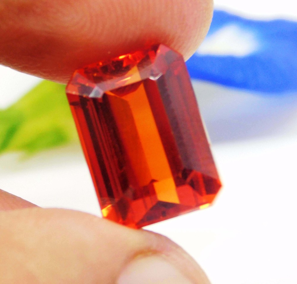 19.20 Ct Natural Mexican Fire Opal Red Orange Emerald Cut Loose Gemstone