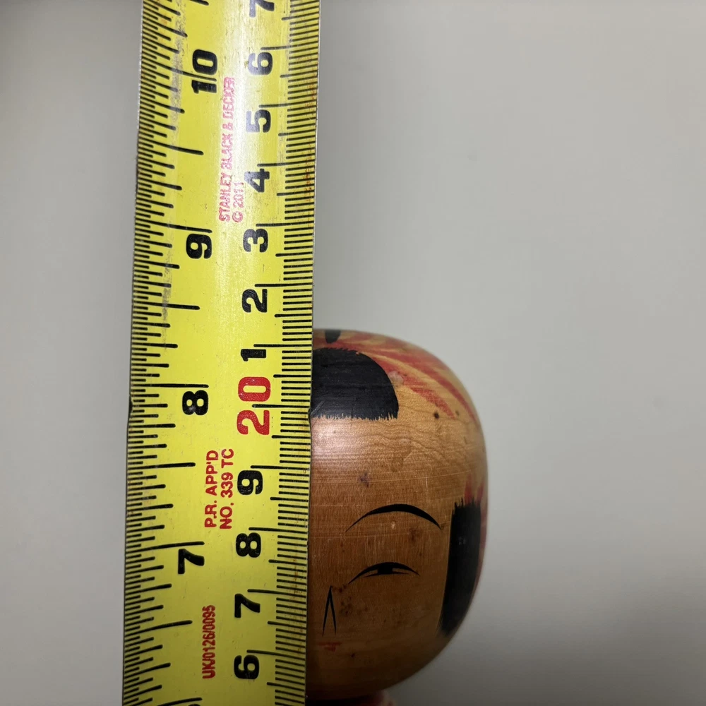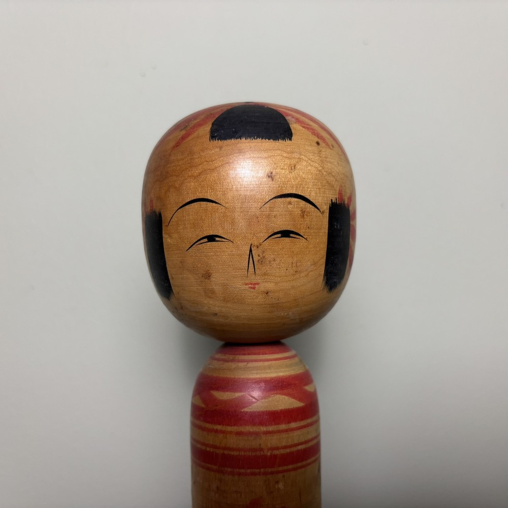 Japanese Kokeshi Doll A Japanese Kokeshi doll that stands approximately 21.5cm tall. This genuine piece of Japanese culture is an interesting objet d'art. History: Kokeshi dolls are Japanese wooden dolls traditionally made for children. It is said that Kokeshi were originally sold to visitors to hot springs in the Tohoku region of Japan during the late Edo period (1600-1868), to supplement business and keep workers' hands busy during the winter months. Over the years they have become increasingly popular worldwide, especially amongst shinnichi (Japanophiles) and collectors. Interesting fact: These dolls are the inspiration behind the Nintendo Mii characters. Please study the photos as they show the condition of the doll. Please note: These Kokeshi dolls are also listed on our own website (Rustique Living) and available in our shop. Therefore this listing may end suddenly if sold through there. Please study the photos as they form part of the description. Free U.K. delivery via Royal Mail / ParcelForce. See our other listings for more Kokeshi's and much more!