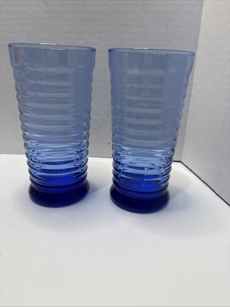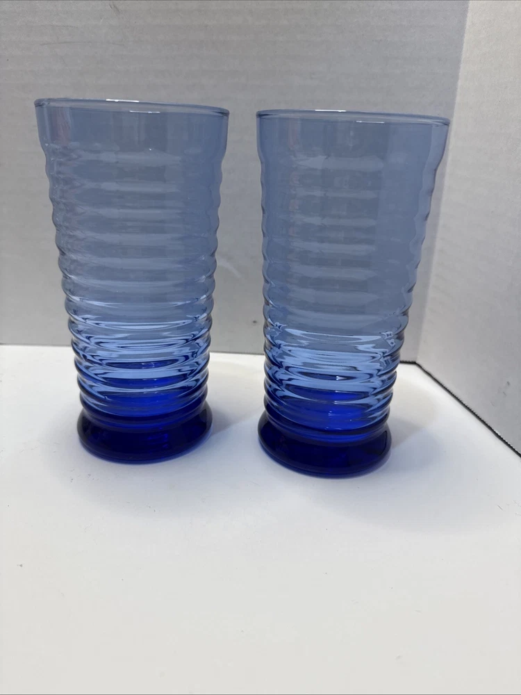 Add a touch of sophistication to your drinkware collection with this four-piece tumbler glass set from Libbey. The glasses feature a striking Sirrus Cobalt Blue pattern with a Mediterranean style that is perfect for all occasions. The round glasses have a glossy finish and are made of durable glass material that is machine washable for easy care. Each glass has a capacity of 16oz and stands 6 1/4" tall, with a diameter of 3.5". These glasses are an original production from the United States and are perfect for both men and women. The glasses are contemporary in style and have a vintage look and feel. Set of 2 Beautiful