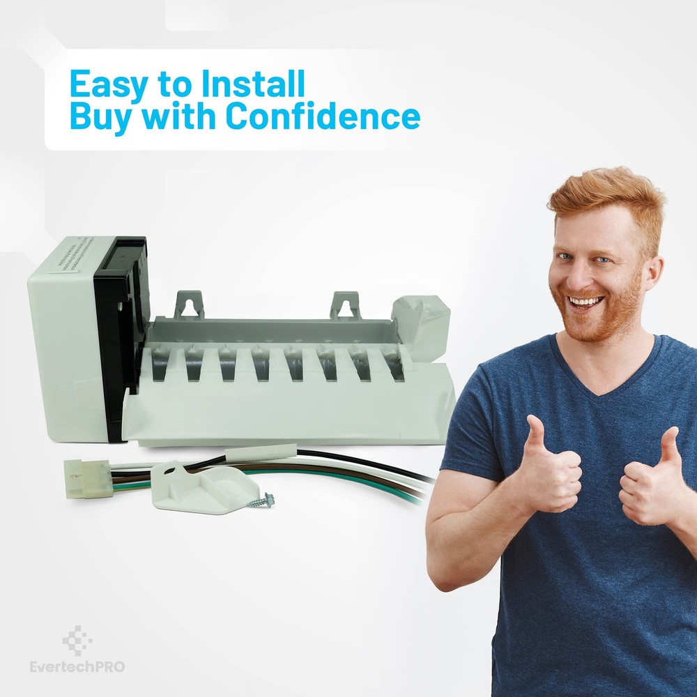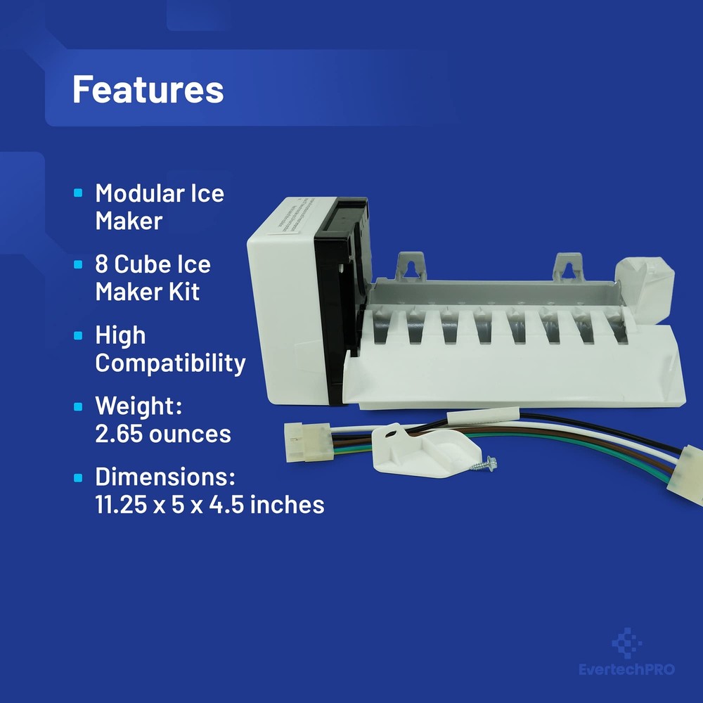 EvertechPRO Refrigerator Replacement Icemaker Part Number 2198597 replaces W10122502 626663 1016069 2198678 AH869316 EA869316 PS869316 W10190960 This is not a Whirlpool OEM product. Fits Whirlpool Refrigerator. Compatible with JCB2488MTR00 JCB2581WES00 JCB2585WEP00 JCB2585WES00 JCD2395WES00 JCD2591WES00 JCD2595WEK00 JCD2595WEP00 JCD2595WES00 MSD2550VEB00 MSD2550VEB01 MSD2550VES00 MSD2550VES01 MSD2550VES02 MSD2550VES03 MSD2550VEU00 MSD2550VEU01 MSD2550VEW00 MSD2550VEW01 MSD2554VEA00 MSD2554VEA01 MSD2554VEB00 MSD2554VEB01 MSD2554VEQ00 MSD2554VEQ01 MSD2554VEW00 MSD2554VEW01 MSD2554VEY00 MSD2554VEY01 MSD2658KES00 MSD2658KES01 MSD2658KES02 MSD2658KEU00 MSD2658KEU01 MSD2658KEU02 MSD2658KGB00 MSD2658KGB01 MSD2658KGB02 MSD2658KGW00 MSD2658KGW01 MSD2658KGW02 MSD2669KEA00 MSD2669KEA01 MSD2669KEB00 MSD2669KEB01 MSD2669KEW00 MSD2669KEW01 MSD2669KEY00 MSD2669KEY01 MSF25C2EXB00 MSF25C2EXM00 MSF25C2EXS00 MSF25C2EXW00 7GF6NFEXTY00 7GS5FHAXTA00 7GS5FHAXTA01 7GS5FHAXTA02 7GS6SHAXKB02 7GS6SHAXKQ02 7GS6SHAXKS02 7GS6SHAXKT02 7GS6SHEXMQ00 7GS6SHEXMS00 7GS6SHEXMS01 7GS6SHEXMS02 7GS6SHEXMS03 7GS6SHEXPL00 7GS6SHEXPL01 7GS6SHEXPL02 7GS6SHEXPL03 7GS6SHEXPQ00 7GS6SHEXPQ01 7GS6SHEXPQ02 7GS6SHEXPQ03 EC3JHAXRL00 EC3JHAXRL01 EC3JHAXRL11 EC Use of the Manufacturers trade names and logos are the registered trademarks of their respective owners. Any use of the Manufacturers brand name, part numbers or model designation for this product is made solely for purposes of demonstrating and for identification compatibility and are displayed for descriptive purposes only. Use of them does not associated with, imply any affiliation or endorsement by any manufacturer. ❖ Compatible with Whirlpool Maytag KitchenAid Jenn-Air Amana Magic Chef Admiral Norge Roper Refrigerator models including JCB2488MTR00 JCB2581WES00 JCB2585WEP00 JCB2585WES00 JCD2395WES00 JCD2591WES00 JCD2595WEK00 JCD2595WEP00 JCD2595WES00 MSD2550VEB00 MSD2550VEB01 MSD2550VES00 MSD2550VES01 MSD2550VES02 MSD2550VES03 MSD2550VEU00 MSD2550VEU01 MSD2550VEW00 MSD2550VEW01 MSD2554VEA00 MSD2554VEA01 MSD2554 ❖ EvertechPRO Refrigerator Replacement Icemaker Part Number 2198597 replaces W63678 AH869316 EA869316 PS869316 W10190960 ❖ Durable Premium Icemaker is a Functional Equivalent to OEM Specifications. Brand New in Original Retail Packaging ❖ Replacement part number: 2198597 Fits For Most Top Brand Refrigerators