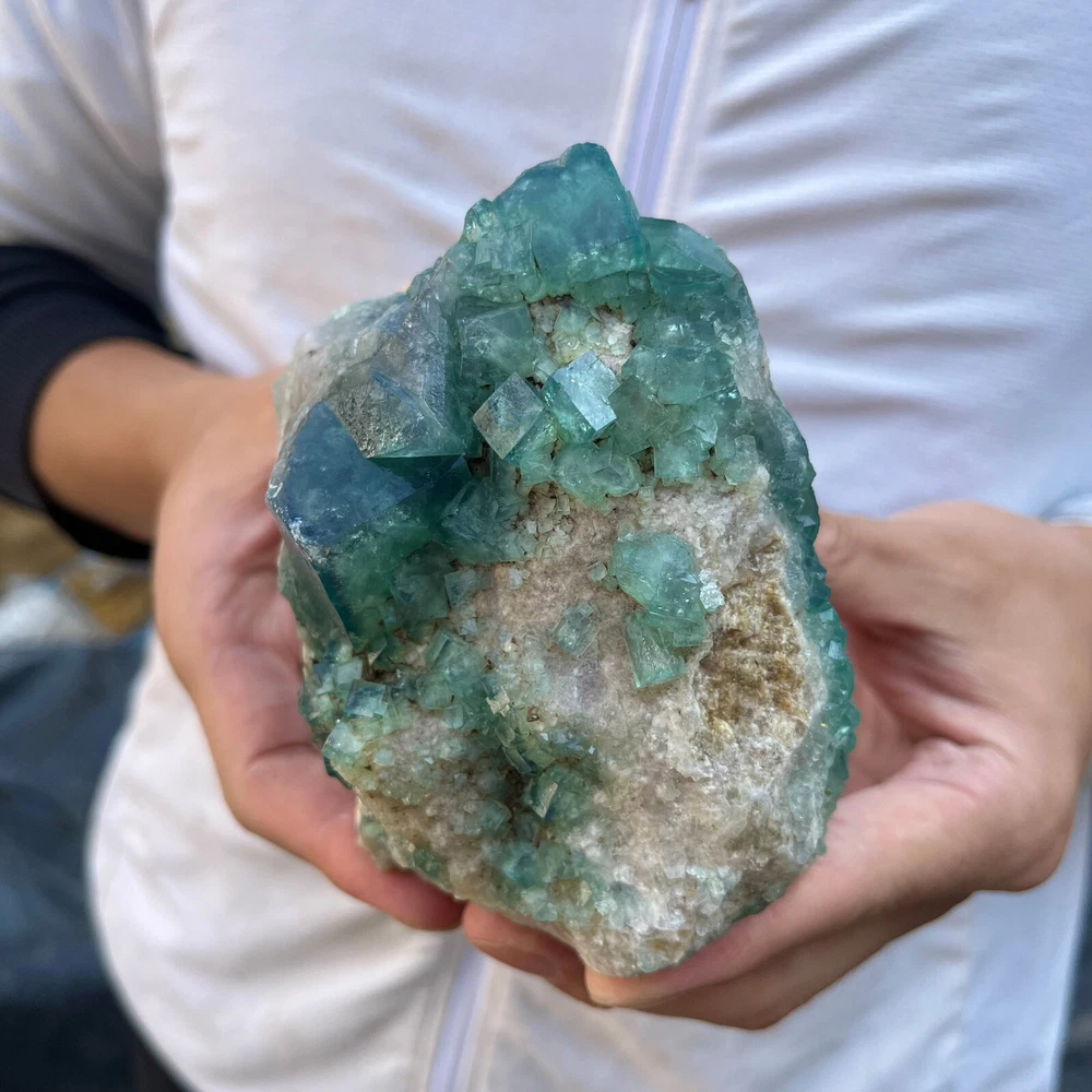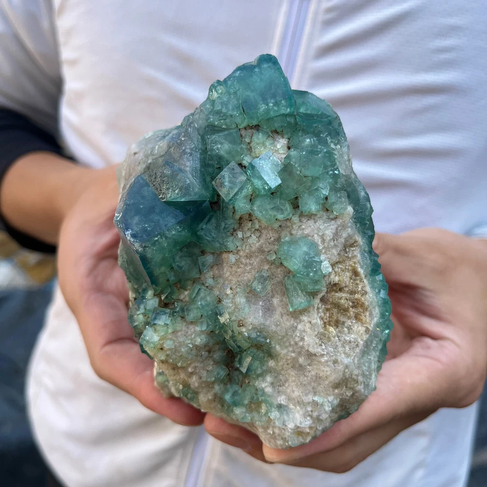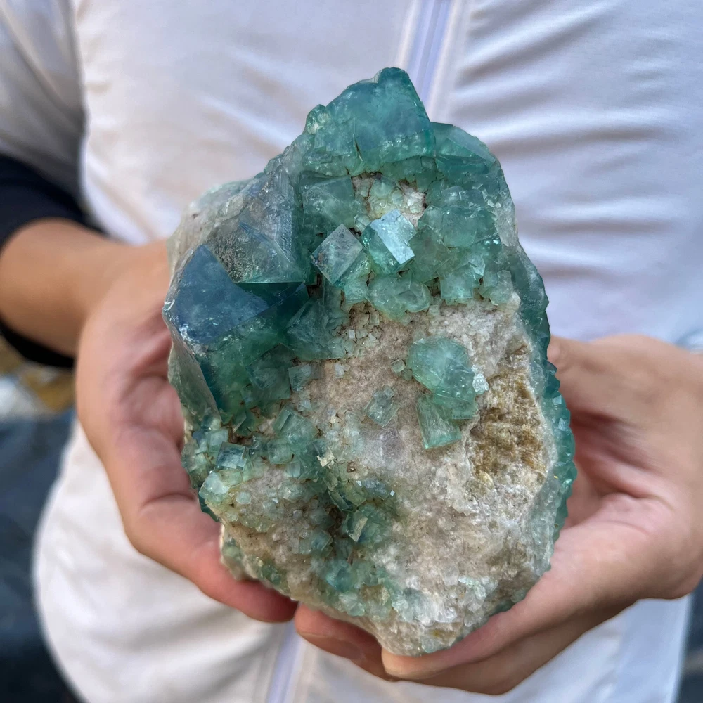 $ 158.44LB Natural Green Fluorite Cube Crystal Cluster Mineral Specimen