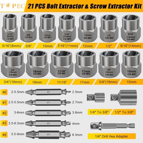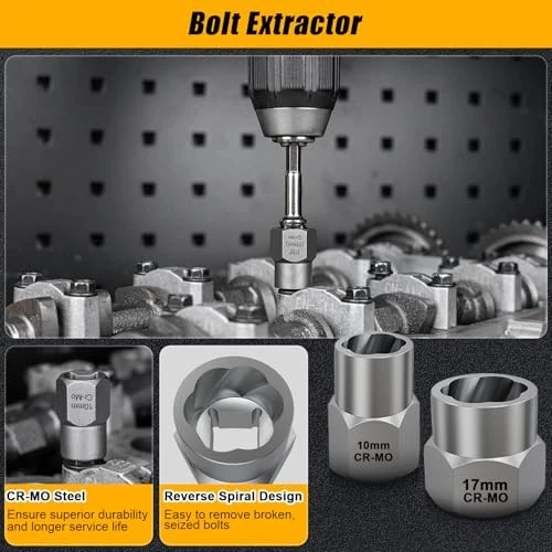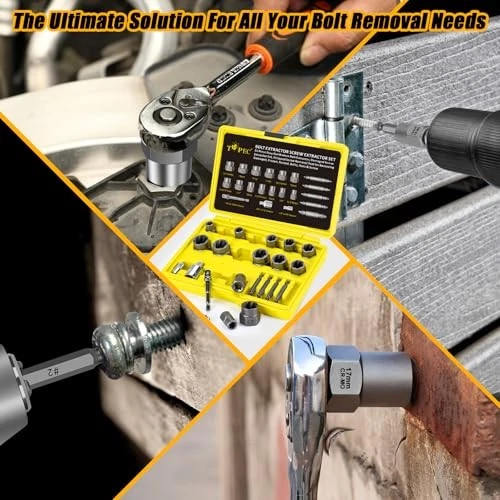 Menu 1. We require immediate payment. 2. We currently accept payment via eBay managed payments only. 3. Once payment is cleared, we will dispatch your shipment within 1-3 business days. Please refer to the "Shipping" tab for more information regarding shipping speed to your destination. 2-IN-1 Bolt & Screw Extractor Kit, 21PCS Easy Out Bolt Extractor Socket Set, 3/8-Inch Drive, Stripped Screw Removal Tool for Broken, Damaged, Rounded Nuts Product description Versatile Combination: 21pcs Bolt & screw extractor kit includes 13pcs bolt extractor kit with 3pcs adapters, 5pcs stripped screw removal tool. This tool kit helps handle most maintenance tasks and is a great addition to home or mechanical tool set Easily Remove: Bolt extractors set offer a wide range of sizes (8mm to 19mm). Each comes with a standard 3/8-inch drive. The special reverse spiral design make it easily remove damaged bolts, nuts. Damaged screw extractor set allowing you to quickly extract damaged, stripped, rusted, painted or rounded screw in speed! Premium & Durability: The stripped bolt extractor made of Cr-Mo Steel. The screw remover and extractor made of 4341 HSS materials. Providing excellent durability and corrosion resistance, and not easily damaged. Please note: Cobalt drill bits should not be used for stainless steel Easy to Use: These stripped bolt extractors are useful for both power tools and hand tools, a screw extractor work with most drill and screw size, All sizes is engraved clearly on the socket for easy identification Multi-Function: This ez out bolt extractor set complete range of sizes making it perfect for mechanical maintenance, automotive, home and production repair needs. A compact, heavy-duty blow mold case keeps all the extractors organized and allows you to take your set on the go PLEASE MESSAGE US IF YOU HAVE ANY OTHER QUESTIONS, AND MANY THANKS FOR READING ALL OF THIS. Copyright ©#. All Rights Reserved.
