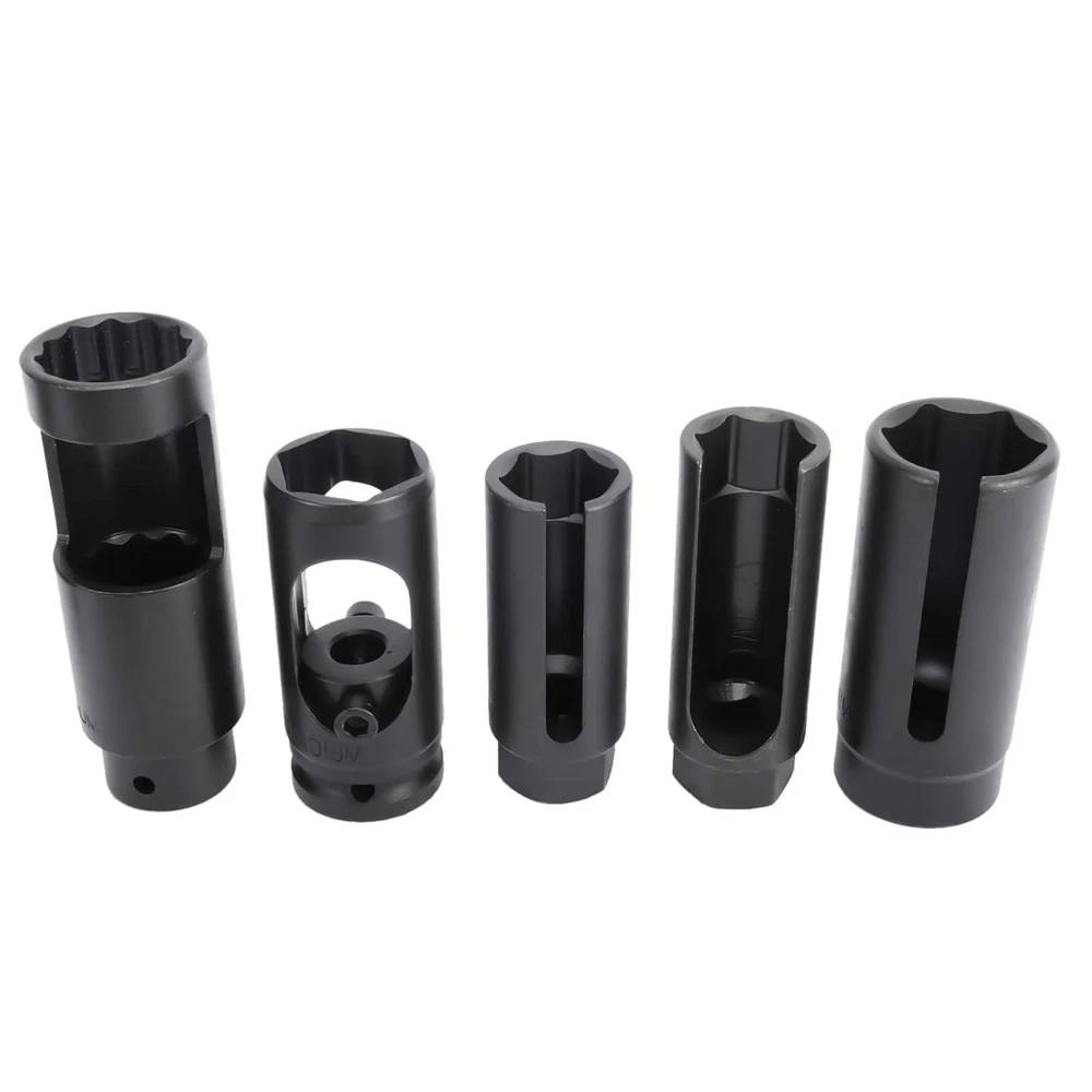 Feature O2 Sensor Socket Set is designed for the removal and installation of oxygen sensors, injectors and thermal switches Side cutout sections allow the sockets to fit over wiring harness and prevent damage to wires Constructed from chrome-vanadium steel (CR-V) for extra strength and longevity, protect them from rusting Package Includes 1pc 17 x 80mmL (12PT): Compatible for RENAULT 1pc 19 x 80mmL (12PT): VW, AUDI, SEAT, MAZDA 1pc 20 x 79mmL (6PT): Compatible for HONDA, NISSAN, MAZDA, MITSUBISHI, SUBARU 1pc 21 x 85mmL (12PT): Compatible for AUDI, VW, ALFA ROMEO, MITSUBISHI 1pc 22 x 90mmL (12PT): Compatible for AUDI, VW, SKODA, OPEL 1pc 22 x 90mmL (12PT): Compatible for AUDI, VW, SKODA, OPEL 1pc 22 x 110mmL (12PT):Compatible for MERCEDES-BENZ, PEUGEOT, FORD, NISSAN, MAZDA, MITSUBISHI, AUDI, VW, ETC 1pc 27 x 79mmL (6PT): Compatible for HONDA, NISSAN, MAZDA, MITSUBISHI, SUBARU 1pc 27 x 85mmL (12PT): Compatible for AUDI, VW, BMW, MERCEDES-BENZ, FORD, NISSAN, MITSUBISHI, LINCOLN, MERCURY 1pc 27 x 110mmL (12PT): Compatible for CITROEN, PEUGEOT 1pc 28 x 78mmL (12PT): Compatible for ALFA ROMEO, FIAT, ROVER, OPEL 1pc 30 x 78mmL (12PT): Compatible for MERCEDES-BENZ 22 x 150mmL (12PT) 1pc 7/8inches OFFSET OXYGEN SENSOR SOCKET 1pc 7/8inches OFFSET DEEP OXYGEN SENSOR SOCKET 1pc 29 x 90mmL (6PT) 1pc 22 x 80mmL (6PT ) 7/8inches Heated Oxygen Sensor Socket (slot on side of wrench to accommodate connectors on heated oxygen sensors) 7/8inches Short low Profile O2 Oxygen Sensor Socket 7/8inches Universal Oxygen Sensor Socket 7/8inches Universal Vacuum Switch PVS, TVS Socket Tool A Close Look