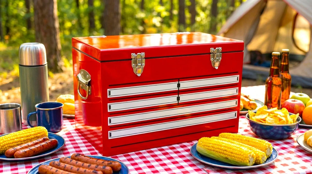 21Qt Red Metal Cooler Beach Camping Surf Trip Sand-Proof Coastal Party Ice Box