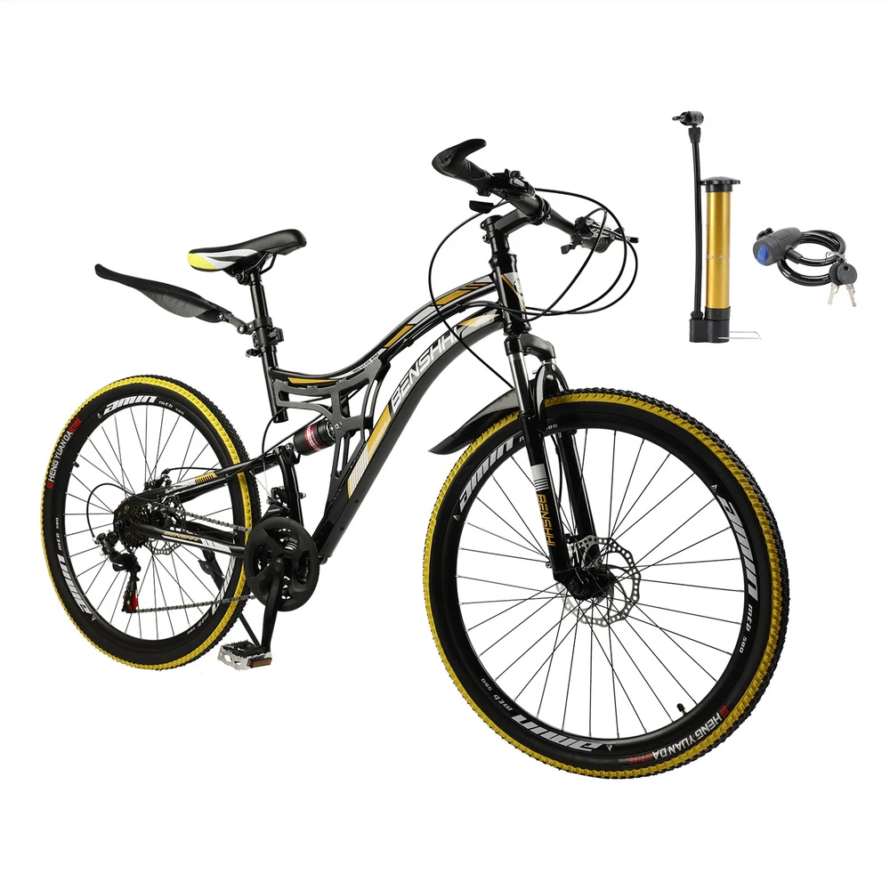This mountain bike is a fantastic choice for teens! The full suspension makes rides smooth, and the thumb shifter ensures easy gear changes. The double disc brakes provide reliable stopping power, and the unisex design suits everyone. Great value for the price—perfect for off-road adventures or casual rides. Highly recommend!