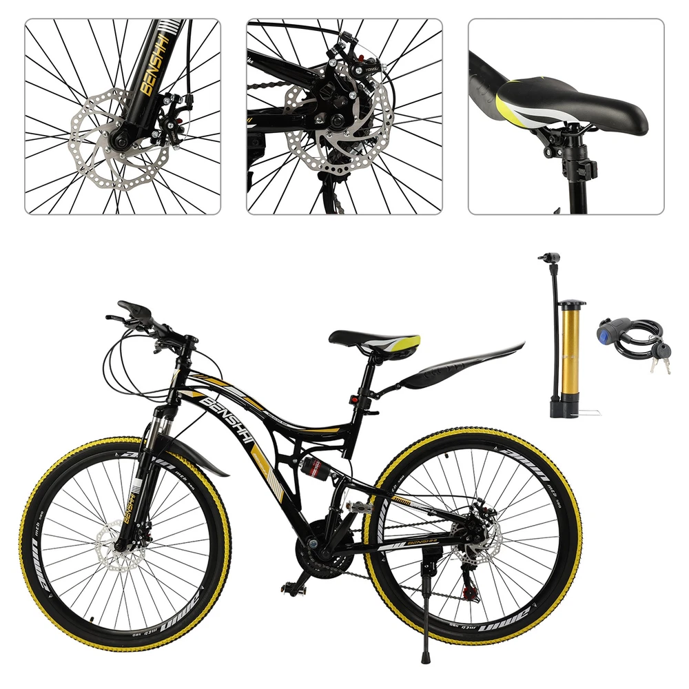 16inches double disc brakes kid's bike children bicycle with auxiliary wheels 139.85 USD Free shipping 16 inches Kid's Bike Child Bicycle fit Ages 7-9 Years Boys & Girls with Basket 129.0 USD Free shipping 14/16inches kid's bike children bicycle with LED headlight boys and girls gift 79.85 USD Free shipping 27 speed Road Bike Racing Bicycle 700C 26" Wheels Adult Black+Blue #8 285.85 USD Free shipping 7 speed 26" Spoke Wheel Cruiser Bike Women Bicycle Girl's City Bike Black #8 286.85 USD Free shipping Mountain Bike Features: 1: The 26 inch frame bike provides you with a great riding experience. 2: This streamline frame design is not just for mountains trails, its also great for students, office workers, urban environments, or any convenient commuting. 3: The bicycle has been adjusted for shifting and braking before leaving the factory, and the disc brakes are automatically adapted. If the brakes are not tight, you can appropriately adjust the tension of the brake cable of the disc brake. 4: Easy to install. Specifications: Color: Decals in paint Type: 21 speed 26" mountain bike Frame size: 17 inches Flywheel: 7 tower wheels Propulsion mode: chain propulsion Tire: spoke wheel Frame material: high carbon steel Brakes: Polly dual disc brakes Tire size: 26"×2.125 aluminum alloy rims Men's / Women's Height: 160-188cm Weight: 100kg max. Seat Distance: 76cm min. -85cm max. ( from the ground) Handle: 95cm ( from the ground) Shifter Style: Thumb Shifter Suspension Type: Full Suspension (Front & Rear) Package Included: 1x Bike -About US Founded in 2012, VIPJQ have professional development and sales, and are involved in various products, providing customers with various high-quality products. Since its establishment, VIPJQ has always adhered to the service concept of "customer first" and the management concept of "pursuit of quality", and is committed to providing customers with high-quality original designs. We commit to provide you the best innovative, quality products & professional services with competitive prices. We value every customer, and we look forward to providing solutions for your business needs to help your business achieve its goals, please contact us immediately! We are all about you! We are a Japanese seller,but with large warehouse in USA. We are profesional on Auto Parts,Car Parts,Motorcycle Parts,3C,other hot sale items and so on. We aim to provide to customers high quality product and best service. -About Shipment&Returns The item usually will be dispatched within 3 days after you ordered.All are free shipping. And it usually takes 3-5 working days to delivery depends on buyers' address or other majeure on the way. If you are not satisfied with the items and want to return the item,we hope you could message us first,we will give you the return details, we think we could give you the best service to save your time and money.Thank you. -About Feedback&Customer Service If you are enjoy your shopping here,not only enjoy the items but also the service,we are appreciate you could give us a 5-star feedback. If you are not satisfied with the item,before you give us the negative feedback,we hope we could give you the best solution through our commutication. We think we could do it if you give us the chance.Thank you.