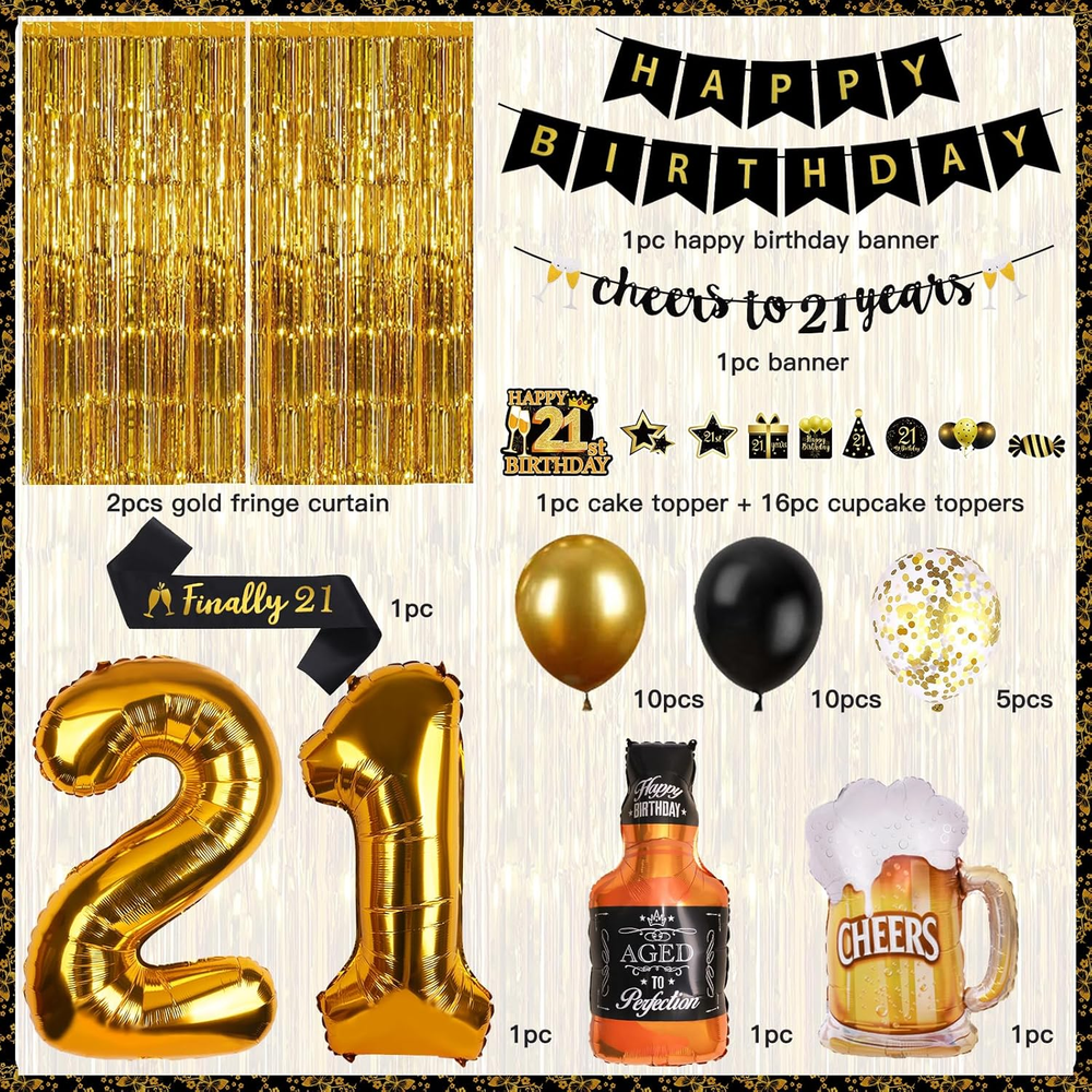 Store New Arrivals Add to Favorite View Feedback Contact Fast deliveries to the customer's home Quality customer service Sophia makes the customers happy! 21St Birthday Decorations for Him, Happy Birthday Decorations Black and Gold 21 Birthday Decor with Happy Birthday Banner, Fringe Curtain, Confetti and Latex Balloons Description 21st Birthday Party Supplies Black Gold:21st birthday decoration set balloons in simple but gorgeous black & gold theme, shiny gold fringe curtain make your party brilliant and unparalleled, Give you a unique and fantastic party experience. which will be an unforgettable and special party for you and your guests 21st Birthday Decor Set:You will receive 1 x happy birthday banner; 1 x cheers to 21 years; 1 x number 21 birthday sash; 1 x gold number 21 foil balloon; 25 x balloons; 2 x gold fringe curtains. 1 x whisky bottle balloon; 1 x Beer mug balloon; 1 x cake topper; 16 x cupcake toppers; 1 x dot glue; 1 x ribbon; 1 x straw Safe and Durable:Our party balloons decorations are made of foil mylar, which is safe and reliable to use, non-toxic and no odd smell, smooth to touch and not easily burst, good material can support your long lasting use Wide Application:Our 21th birthday banner and balloons are great decorations for the 21th-anniversary party. black and gold party decorations, It’s perfect for hanging on the wall, window, yard or any place you want to decorate. Suit for indoor party, outdoor party in addition. It can also be used as a party tablecloth and a backdrop for photo booths, create a chic party backdrop to make your party more attractive and host an unforgettable birthday party We Are Always Ready to Help: We are very confident in the quality of our party products as we use quality materials so you can buy with confidence. We are committed to bringing our customers a better shopping experience Product description Unit Count 25.0 Count Style 21st Batteries required No Pattern Solid Material Aluminum Foil Item Weight 13.4 ounces Color Black, Gold Theme Alphabet Occasion Anniversary, Birthday Package Dimensions 8.58 x 8.35 x 1.97 inches Included Components Fringe Curtain ABOUT US We offer the best prices around on high quality products. Our E-store includes media such as books, movies, music and games while offering electronics, toys, sporting apparel, clothing, tools, general home, garden items and more. SHIPPING We are always working hard to ensure your package arrives as soon as possible. Please understand that some factors like weather, high postal traffic, and the performance of shipping companies are outside of our control. We offer free shipping to the lower 48 states and ship within 2 business days of payment, usually sooner. We do not accept P.O. Boxes. Please provide a physical address. For shipping outside of the continental USA, we only use eBay's Global Shipping Program. The item is shipped to KY and then sent to the rest of the world. International customers are responsible for all duties and taxes. Continue to 'check out' to calculate costs for shipping the item to your country. Messages regarding eBay's Global Shipping Program MUST be directed at eBay EXCLUSIVELY. RETURNS We offer a 30-Day Return Policy on items in which you are not completely satisfied with. You have the option of a full-refund or an exchange of the item. No returns are available on items shipped outside of the USA PAYMENT We accept PayPal. CONTACT US This page content is yet to come Please ad us to your favorite seller and visit again later Thank You CUSTOMER SATISFACTION We try our very best to make sure every customer is completely satisfied. If there's a problem, message us! We're happy to help. WE ACCEPT