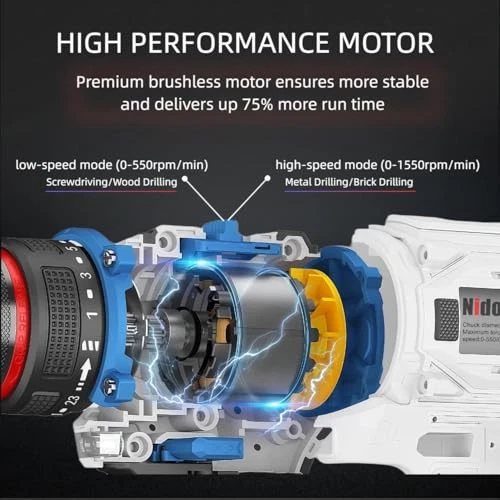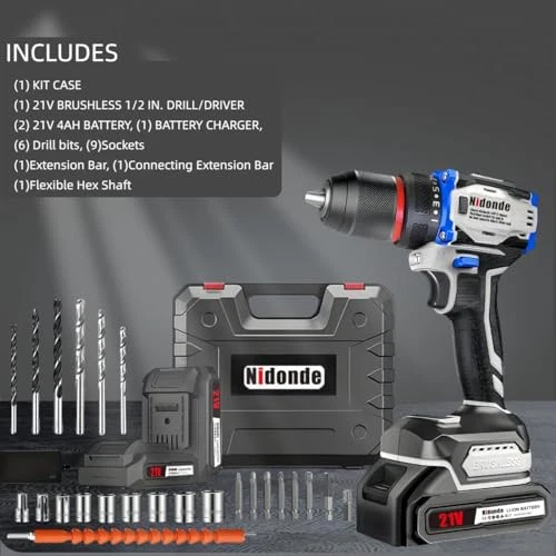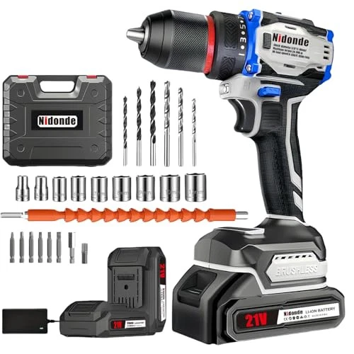 21V Brushless Cordless Drill Set – Max Torque 55Nm, 0-1550RPM Variable Speed,