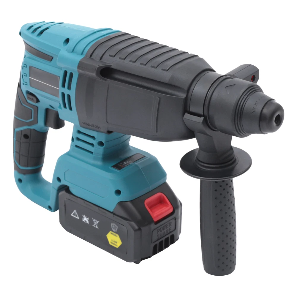 21V Cordless Brushless Hammer Demolition Concrete Jack Hammer W/ Charger 1100rpm Heavy Duty Rotary Hammer Drill, Safety Clutch 3 Functions with Vibration Control with Case Description Please choose a smooth tool for the work of your home improvement. No matter whether you are a professional worker or a DIY user, this electric rotary hammer of ours will be your ideal choice. It uses a pure copper brushless motor with high operating efficiency, and low noise and has a long service life. The steel chuck is durable and allows you to feel the strength of each hammer blow, making it easy to break the wall. Specification Color: Blue Operation Method: Handheld Material: Nylon, Steel, Iron, Copper, Rubber, Aluminum Battery: 21V Motor Voltage: 21V Power: 850W Impact Frequency: 0-520rpm/min Unloaded Speed: 0-1100rpm/min Battery Capacity: 4.0AH Charging Time: 1.5h Gross Weight: 5.6kg/12.35lbs Power Source: Rechargeable Lithium Battery Portable Box Size: 42*34*13cm/16.54*13.39*5.12inch Body Size: 31*20cm/12.20*7.87inch Vice Handle Length: 17cm/6.69inch Power Supply Width: 8cm/3.15inch Bottom Length: 21cm/8.27inch Maximum Drill Diameter: 26mm/1.02inch Package Size: 42*34*10cm/16.54*13.39*3.94inch Package Included 1* Rotary Hammer 2* Batteries 1* Charger 1* Depth Gauge Key Features Strong Power: The maximum power is 850W, and the speed is 520r/min, which can efficiently and easily carry out various crushing and drilling operations. Dust-proof System: The outer protection structure of the motor is complete, which can effectively prevent dust from entering the motor and ensure the smooth operation of the rotary hammer. Multi-function: You can switch between three functional modes of a hammer only (chiselling-only), hammer drill (hammering and rotation), and drill only (rotation only) by rotating the switch button to adapt to various working situations. High Efficiency Motor: This machine adopts a brushless motor with high power, without burning the machine, and has a long service life. And you don't need to replace the carbon brushes, which saves you time. Convenient Operation: The rotary hammer is powered by lithium batteries without wire restrictions, and with 2 replaceable lithium batteries, making the operation more convenient and fast. Flexible Speed Change: The rotary hammer's speed can be changed flexibly through the infinitely variable speed switch. The rotation speed changes with the pressing force, which is very convenient to use. Replaceable Drill Bits: The drill bit of the electric drill is removable and replaceable. This product can be adapted to drill bits within the 26mm/1.02inch diameter to meet your different needs. Easy to Store and Carry: The rotary hammer is equipped with a storage box, you can neatly store the machine in it after use. Moreover, it comes with a portable handle, which is easy to carry. Rotatable Sub-handle: The sub-handle is 360-degree rotatable, you can find a comfortable angle according to different working scenes and easily deal with various dead ends. It also has a shock-absorbing effect, making it more comfortable for you to use. Excellent After-sales Service: We aim to provide quality products and services. If you have any problems, please feel free to contact us, we will reply and solve the problem for you as soon as possible. Details Pure Copper Motor : It has a built-in high-precision copper core motor that has good conductivity, strong power, and high-temperature resistance for longer life. Durable Switch: The switch has been tested for durability and can be opened and closed repeatedly, with long service life. Nylon Casing: The rotary hammer adopts a high-strength nylon casing, which will not crack when dropped at normal height, so you can use it at ease. Anti-slip Handle : It is designed with two handles for more stable control of the electric drill. The anti-slip pattern on the handle allows for a more secure grip and safer operation. Large-capacity Lithium Battery: The rotary hammer adopts a lithium battery with a battery capacity of 4.0AH, which provides long-lasting battery life and guarantees your work. Forward and Reverse Adjustment Button: After the drill is blocked, you can push the reverse button to adjust the rotation direction of the rotary hammer, which can easily solve the problem of jamming. Steel Clamping Head : The clamping head is made of steel with high strength, which can hold the drill tightly and prevent it from falling off. Application This rotary hammer is suitable for professional or daily home users. And it is suitable for wood, masonry, concrete, brick, and metal. Notes Please note that this product does not include a drill bit, you can configure a drill bit with a diameter up to 26mm/1.02inch according to your needs. Please allow the slight color difference caused by the shooting light and 1-3 cm error due to manual measurement, and make sure you do not mind before ordering. Payment Delivery details Terms of sales About us Contact us Payment We accept ebay payment 。 Fees such as import duties, taxes are not included in the item price or shipping costs. These charges are the buyer's responsibility. Delivery details Shipping: 2-9 working days to: USA Terms of sales We maintain high standards of excellence and strive for hundred percent customer satisfaction. Feedback is very important to us. We hope that you contact us immediately before you give neutral or negative feedback, so that we can address your concerns. It is impossible to address issues if we do not know about them! About us Your satis faction is our ultimate goal. We work hard to earn your trust and future business. Our certified technicians have tested each item before shipping. The unit comes with 1 year limited warranty on all manufacturing defects. a) If you receive a defective item, you may return it or ask for a discount. Please contact us within 14 days after you receive the package. b) What you returned must be intact and in its original packaging as re? u. Cus