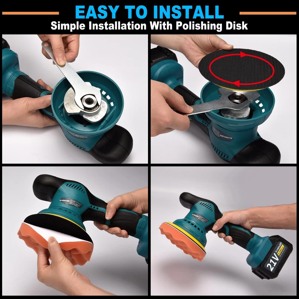 【Powerful Motor & 6 Variable Speed Control】 Orbital buffer is composed of powerful motor and pure copper wire, polishing machine eusures longer service life, but lower noise. The speed range is from 2800 rpm to 5500 rpm to meet different usage requirements. Variable speed polisher has 3 levels, low speed (1-2) can be used for waxing and polishing; medium speed (3-4) for buffing and cleaning; high speed (5-6) for removing paint defects and oxides. 【2 x 4000mAh Rechargeable Batteries】 The rechargeable dual action polisher is equipped with 2*21V 4000mAh rechargeable li-ion batteries and charger, small size and large battery capacity. The batteries can be used alternately without worrying about running out of power. Sanding machine also has anti-overload, anti-overcharge and anti-overheat functions to provide more safety protection. Please retain power for the battery when not use, to better protect the battery life. 【Lightweight & Portable】 The cordless polisher weighs only 1.72 kg, making it easy to carry and . The ergonomic, non-slip handle of the polisher machine is comfortable to the touch and easy to hold for a secure grip and precise control. 【Easy to Use】rotary polisher can be used anywhere by simply plugging in the battery. Before use, align the required pads or sandpaper to the polishing disk, after installing firmly, then select the required gear according to the actual scene, the push switch design is easy to control. 【What You Will Get】 Car buffers and polishers kit includes: 1 x buffing machine, 2 x 21V 4.0Ah lithium batteries, 1 x fast charger, 1 x flat sponge pad, 1 x wave sponge pad, 1 x wool pads, 1 x sandpaper. It is an ideal choice for car polishing, waxing, buffering, and is friendly to both professionals and beginners. 【Friendly 】 provide 12 months after-sales service! If you have any questions about the product or order, please feel release to let us know, we will provide you with good within 24 hours to solve the problem.