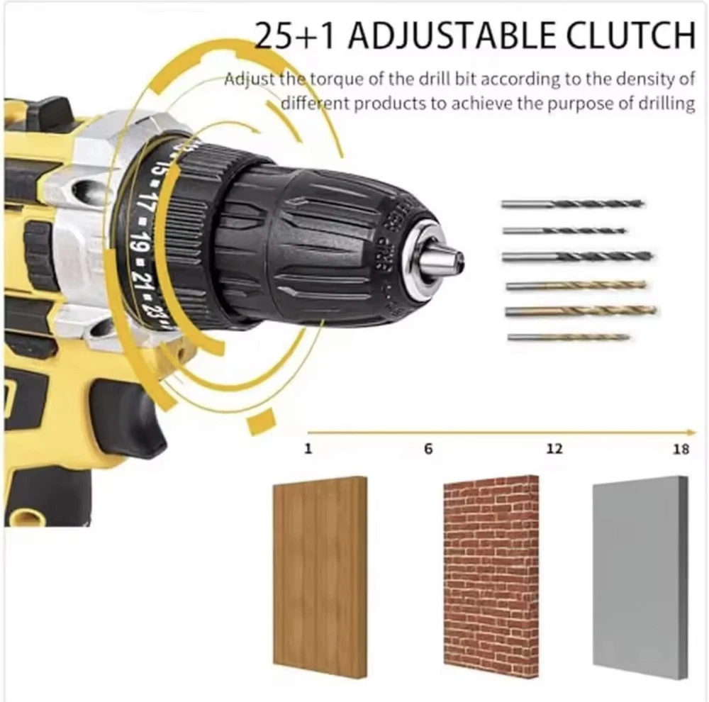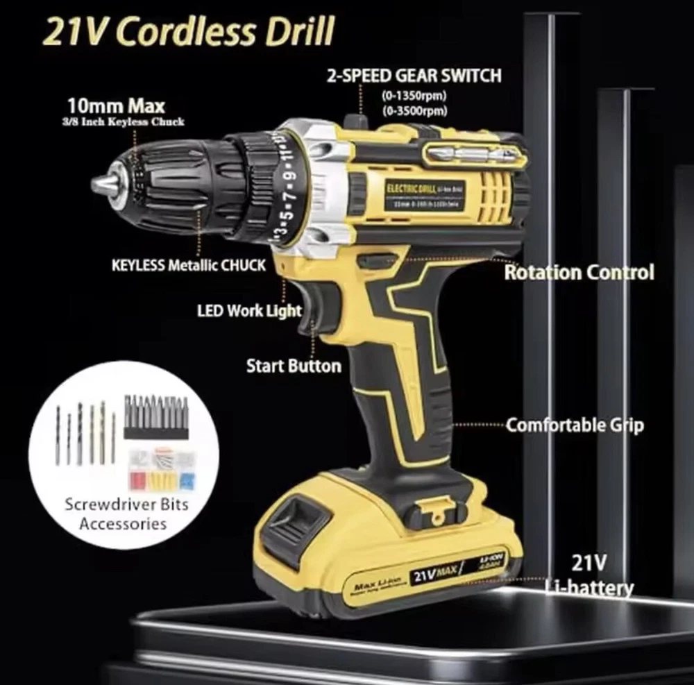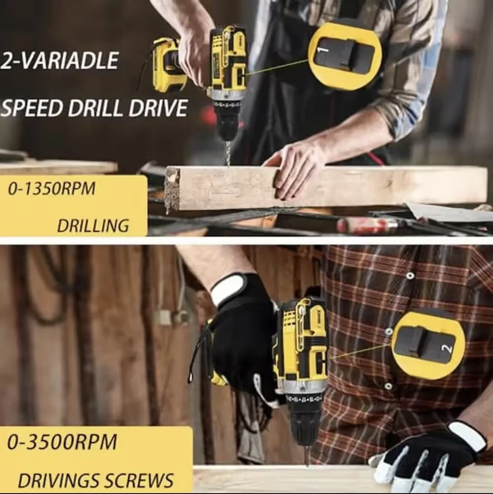 20V Cordless Brushless Drill Set 3/8"Power Drill Tool With Battery And Recharger