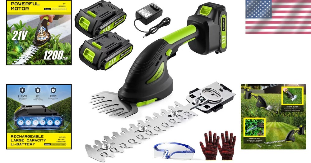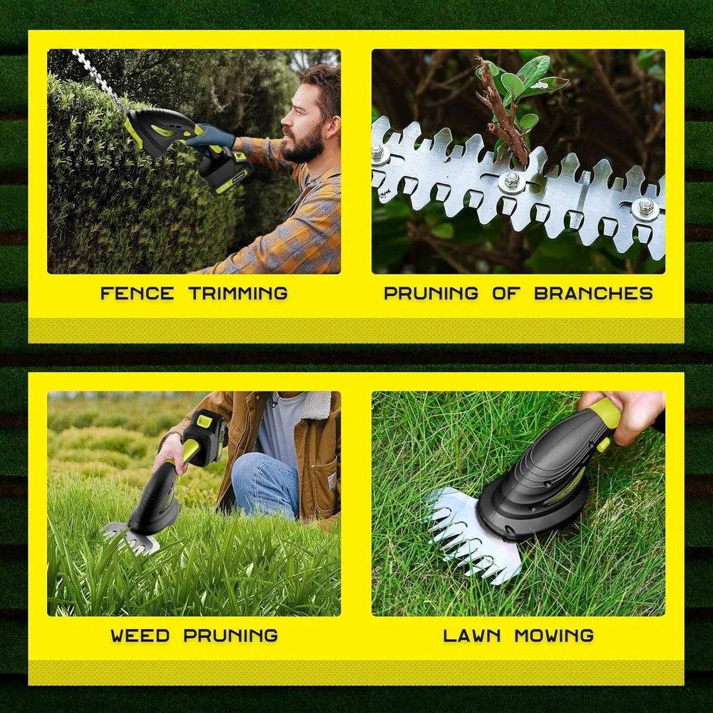 This cordless hedge trimmer is a game-changer! The lightweight design and sharp stainless steel blades make trimming hedges and bushes effortless. The two batteries mean no downtime—just swap and keep going. It’s powerful enough for thick branches yet precise for delicate shaping. Perfect for quick yard cleanups or detailed garden work. No cords, no hassle—just smooth, efficient cutting every time. Love that it’s so easy to handle!