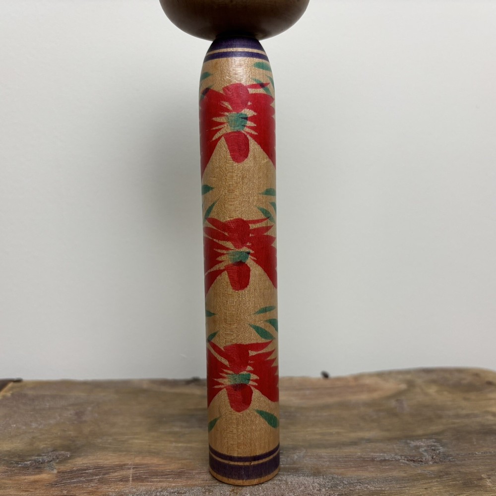 Japanese Kokeshi Doll A Japanese Kokeshi doll that stands approximately 21cm tall. This genuine piece of Japanese culture is an interesting objet d'art. History: Kokeshi dolls are Japanese wooden dolls traditionally made for children. It is said that Kokeshi were originally sold to visitors to hot springs in the Tohoku region of Japan during the late Edo period (1600-1868), to supplement business and keep workers' hands busy during the winter months. Over the years they have become increasingly popular worldwide, especially amongst shinnichi (Japanophiles) and collectors. Interesting fact: These dolls are the inspiration behind the Nintendo Mii characters. Please study the photos as they show the condition of the doll. Please note: These Kokeshi dolls are also listed on our own website (Rustique Living) and available in our shop. Therefore this listing may end suddenly if sold through there. Please study the photos as they form part of the description. Free U.K. delivery via Royal Mail / ParcelForce. See our other listings for more Kokeshi's and much more!
