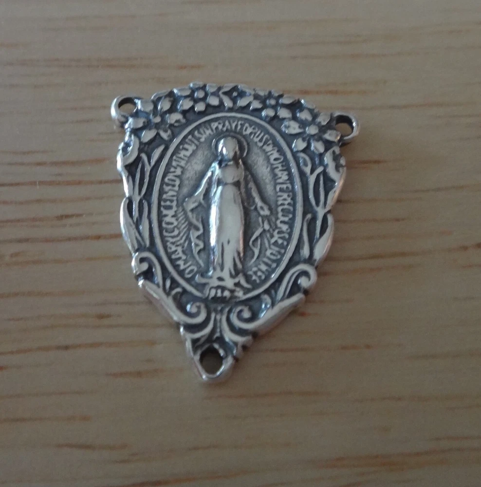 21x17mm Rosary Center with Miraculous Mary Sterling Silver Charm! Look in my ebay store for over 6000 charms and other sterling silver jewelry items. I have chains and charm bracelets.