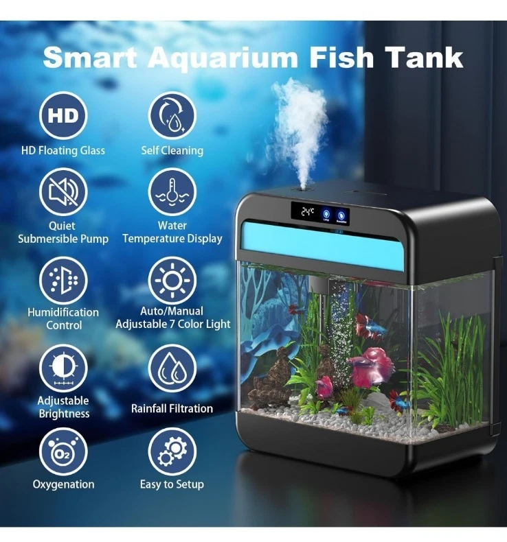 2.2 Gal Fish Tank Aquarium with Humidifier 7-Color LED Light and Timer
