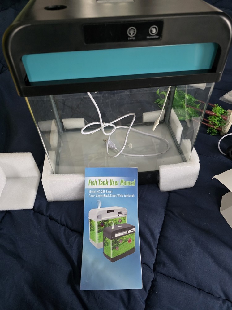 Item Weight:3.18 KilogramsIncluded Components:three decorative plants, removable blue board, reusable filter spBrand:Does not applySpecial Feature:LightweightPackage Dimensions:14.29 x 12.52 x 7.95 inches; 7.01 PoundsTank Volume:2.2 GallonsShape:rectangular prismType:Does not applyCountry of Origin:ChinaItem model number:ddd477dc-ed07-46ad-8527-48fa68d8fcf6Style:ModernModel Name:HC-288 SmartItem Package Dimensions L x W x H:14.29 x 12.52 x 7.95 inchesMaterial:GlassTarget Audience Keyword:fishSpecific Uses for Product:Aquarium for Fish