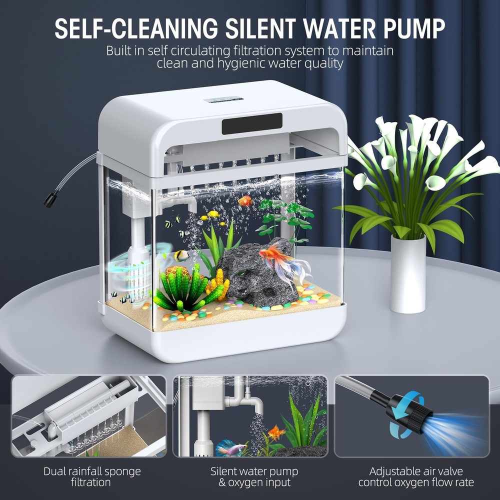Smart Aquarium Fish Tank 5G Self-Cleaning Starter Kit with Efficient Filtration