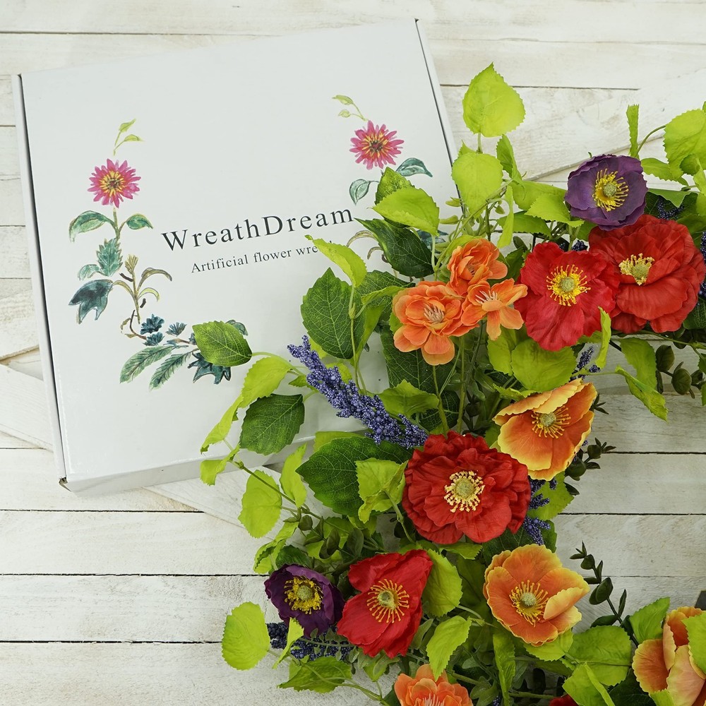 22 inch Artificial Spring Summer Wreaths for Front Door Poppy Wreath with Lavender Ear,Cherry Blossom,for Front Door Indoor Outdoor Home Farmhouse Decor Product Details Color: Red Poppy Brand: WreathDream MPN: SW2023 UPC: Does not apply EAN: Does not apply Color: Red Poppy Brand: WreathDream Material: Silk Mounting Type: Door Mount Shape: Round Product Dimensions: 20"D x 20"W x 5"H Occasion: Multi-occasions Manufacturer: WreathDream Color: Red Poppy Brand: WreathDream Material: Silk Mounting Type: Door Mount Shape: Round Product Dimensions: 20"D x 20"W x 5"H Occasion: Multi-occasions Manufacturer: WreathDream Item Weight: 1.41 pounds Country of Origin: China Item model number: SW2023 Batteries required: No High-quality Material: This artificial Spring Summer poppy wreath is made of silk which can be used all year round. Unique Design: This Spring front door wreath is decorated with a full circle of Green leaves, lifelike poppy,Lavender ear,Cherry Blossom a romantic look that makes for a wonderful style for spring door decoration. Elegant and vivid colors make for timeless seasonal home decor Perfect Size: The outer diameter is about 22", the inner diameter is about 10", perfect size for indoor and outdoor decoration Easy Maintenance: Highly realistic handmade artificial wreath makes it durable and requires no special maintenance. Just wipe it with a wet tissue or towel to keep it neat Multi-occasions: The wreath can be used indoor or outdoor, place it on your front door, or hang it above your fireplace. It's also perfect for decorating weddings, birthdays, stages, bedrooms, offices, dining rooms, and others