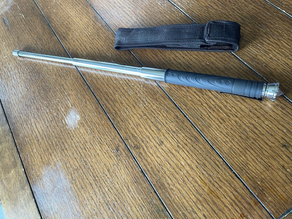 The 22 Inch Expandable Walking Stick is a versatile survival kit suitable for outdoor activities like backpacking, camping, and hiking. Made of durable metal, this stick is designed to work even when wet, making it a reliable tool for emergencies. The stick includes a belt clip and holster for easy carrying and quick access in case of need. Its black color adds a sleek and practical touch to this essential outdoor gear.