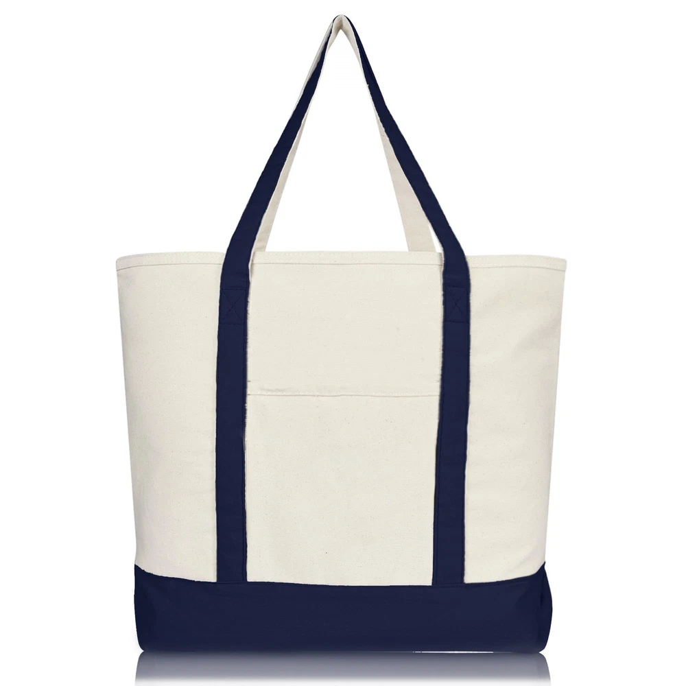 Destined to become your daytime essential, keep your daily items and documents with this characteristic 22" Cotton Canvas Shopping Tote. This tote features a heavy duty cotton canvas material with a Zipper opening to keep your goods safe. There is also a front pocket for accessories storage, and comes in 10 wonderful colors! FEATURES: Heavy Duty Shopping Tote with Large top zipper w/ front open pocket. COLORS: Black/Natural, Brown/Natural, Mint Green/Natural, Natural, Navy Blue/Natural, Orange/Natural, Pink/Natural, Purple/Natural, Red/Natural, and Royal Blue/Natural SIZE: 22" X 16" X 6". MATERIAL: 12 oz. Cotton Canvas. CLOSURE: Zipper, DROP STRAP LENGTH: 11" Features: Large zippered shoppingTote w/Front open pocket Material: 16 oz Size: 22" X 16" X 6" Colors: Navy/Natural Intended use: Shopping tote, reusable grocery bag, picnic bag, everyday carrying bag, camping and more!