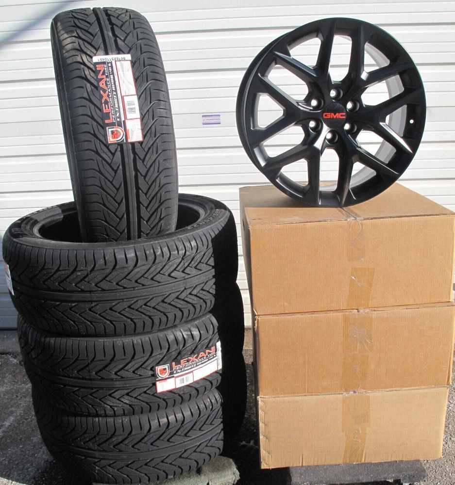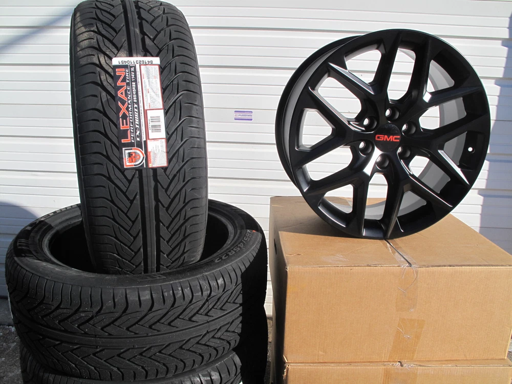 Shipping cost to some of the destinations in the USA may be different due to extra charges by shipping companies, for example city of NY, West coast like California, Washington State and others in that area, some rural delivery areas like the Mountains, Islands, Gated communities. If Extra charges are required, we will contact buyers after we receive orders or Buyers can sent us request for estimated shipping cost. EZBuy Wholesale Customer service available to answer all your questions. Per Ebay Policy our phone number will be available only to buyers after placing order. For any questions please use Ask a question link on the bottom of this page in Questions and answers about this item section. Compatibility provided by Ebay is not properly working and may provide wrong information. See our description for fitment or contact us You are bidding on BRAND NEW set of 4 Brand New Chevrolet Factory Style 22x9, 6 lug Gloss Black GMC Yukon, Sierra wheels rims. Brand New Factory Reproduction. Will also fit Chevrolet Suburban, Silverado, Tahoe, Avalanche , Escalade. Brand New tires 285-45-22 114V Lexani extra load All Season. All mounted and balanced. GMC center caps are included. Tire Pressure Sensors are not included. Original sensors can be reinstalled from buyer's original wheels or for additional $160 for all 4, per buyer request, we can install new sensors. Black lug nuts available for $55 per 24 lug nuts. These wheels will fit most Chevy and GMC truck models from 1992 and Up years. STK#22".CV62 TO ALL OUR CUSTOMERS: Please check our payment, shipping and return policy and place a bid if you accept it. Send your payment or contact us regarding your payment with in 24 hrs after winning the bid. If payment or information regarding your payment is not received, this item will be relisted or offered to another bidder. All international shipping quote including shipping and insurance. International recipients are responsible for any duty, tax, brokerage fee or any extra charge(s), regarding receiving the item in the recipient's country. We will be glad to assist you with any questions, please contact us on ebay site. For fitment questions and technical support customer service contact via ebay messages EZBUY247 is working for You 7 days a week. Our over 20 years of experience in wheel and tire business will help to meet Your satisfaction, we stand behind our products. BID WITH CONFIDENCE Customer service Problems with an order? If something is wrong with an order, we certainly do want to help you. Please read the following for more information on how to proceed. Shipping Problems: Please inspect your package immediately prior to accepting delivery. Damages and evidence of tampering on the outer packaging must be noted on the delivery receipt of the driver. Shipping Damage: Damages must be reported and filed with carrier immediately. Orders lost in transit must be reported to us immediately. We are not liable for carrier damages. A claim must be filed with Carrier Company to facilitate an exchange. If you received a damaged product, please report it to us within 48 hours from date of receipt. No exceptions. Wrong Items: If you received a wrong item, this should be reported within 2 business days from date of receipt. We shall provide you with a mailing label to ship back the wrong part. The replacement will only be sent once the wrong item has been received and confirmed by us. On Jul-31-06 at 05:16:37 PDT, seller added the following information: After purchasing, pay instantly with your credit card through PayPal! On Sep-13-06 at 09:58:28 PDT, seller added the following information: Use the FREE Counters 1 million sellers do - Andale! Shipping Instructions Large items like wheels/tires sets shipped via Freight, lift gate service is not included to a shipping cost. Items can be unloaded from the truck individually or lift gate service can be ordered per customer expense.