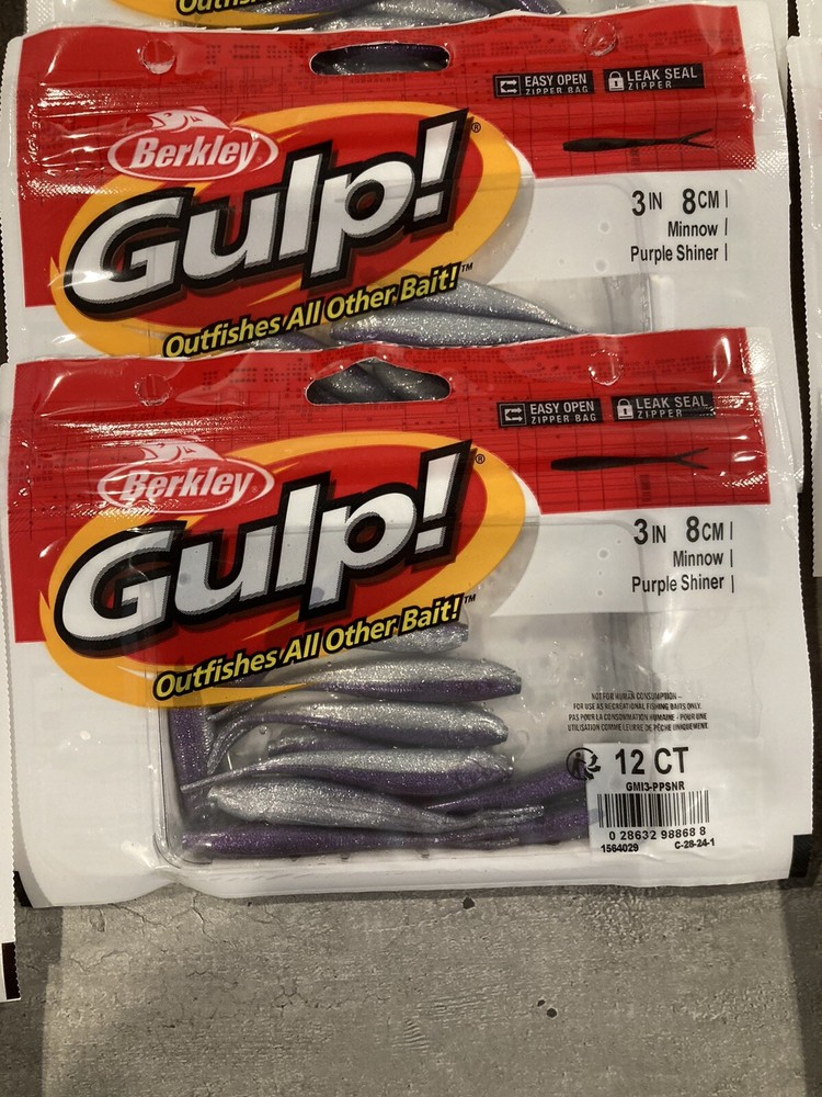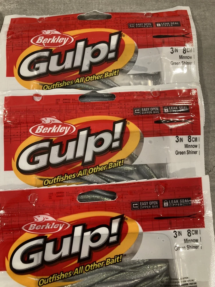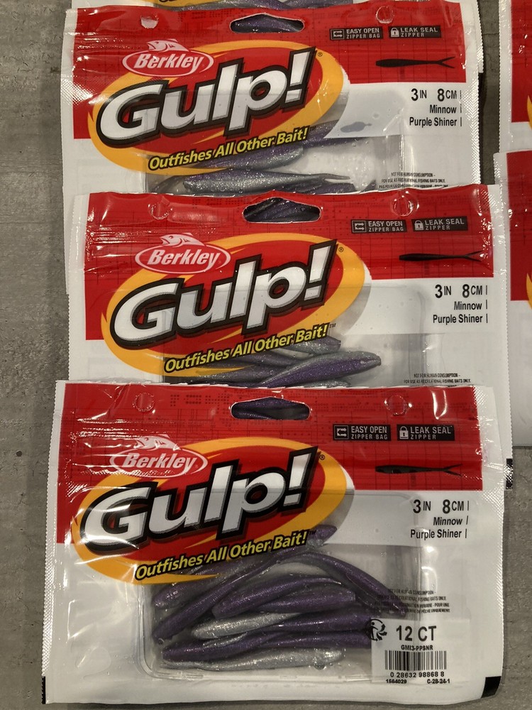 You are receiving the 22 packs of Berkley Gulp minnows shown in the photos. These are all brand new and sealed and in their original packaging. 2 different color patterns and 11 packs of each color pattern for 22 packs total. Ships via USPS. Good luck on the water!